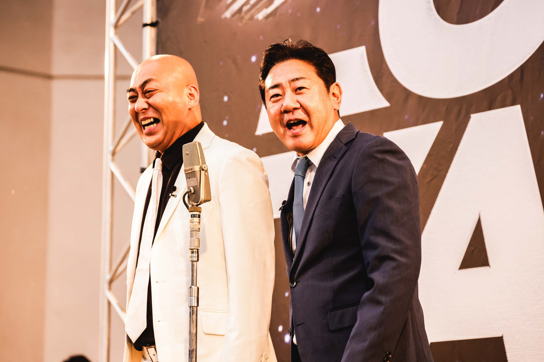 この渡辺の素直な言葉もなんだか嬉しかった。渡辺がまさのりの頭をツッコミながら叩くことを「ボーカルとドラムとやらして頂いています!」なんて言いながら、まさのりはギャグを連発していく。レッド・ツェッぺリン「移民の歌」からブルーザー・ブロディなんていう昭和のオヤジたちがニタニタするしかない男臭いけど、みんなが笑える漫才をぶちかましてくれた。