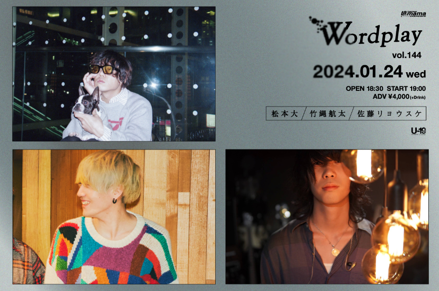 松本大・竹縄航太・佐藤リョウスケによる弾き語りスリーマンライブ『Wordplay vol.144』が2024年1月24日(水)に東京・渋谷La.mamaで開催されることがわかった。