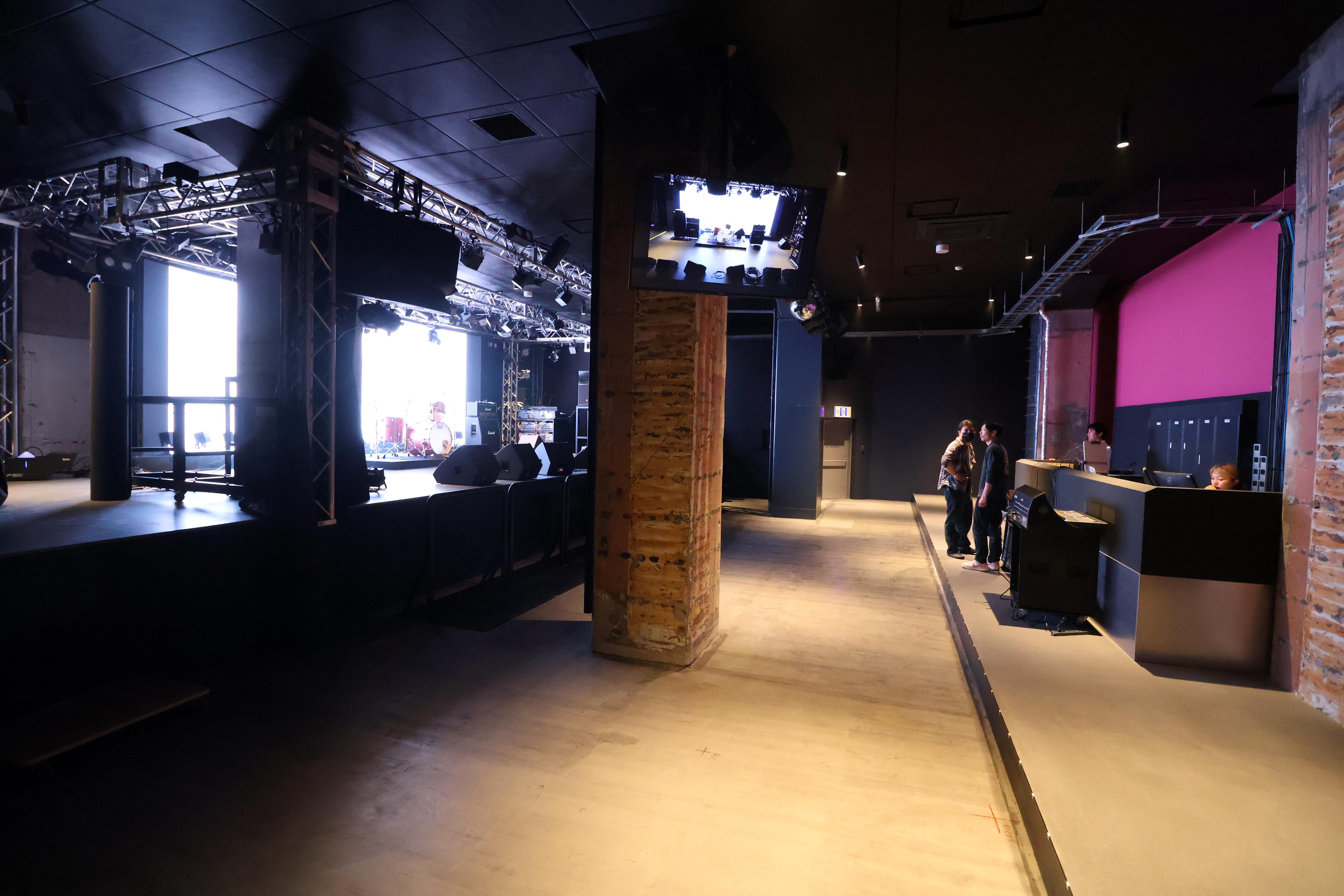 「META VALLEY」はホール床面積263㎡、収容人数はスタンディング約600人。フロアの背面の壁はイメージカラーのピンクに染められ、フロアは天井が高く、ワイドなステージが広がっている。音響設備にもこだわっていて、ステージから客席に向かう足元には6台のウーファースピーカーが内蔵されているので、体全体で音を楽しむことができる。さらに、ステージ全背面にはLEDパネルを常設。ライブはもちろん、クラブイベントなどで映像を駆使した演出などを楽しむこともできるという。
