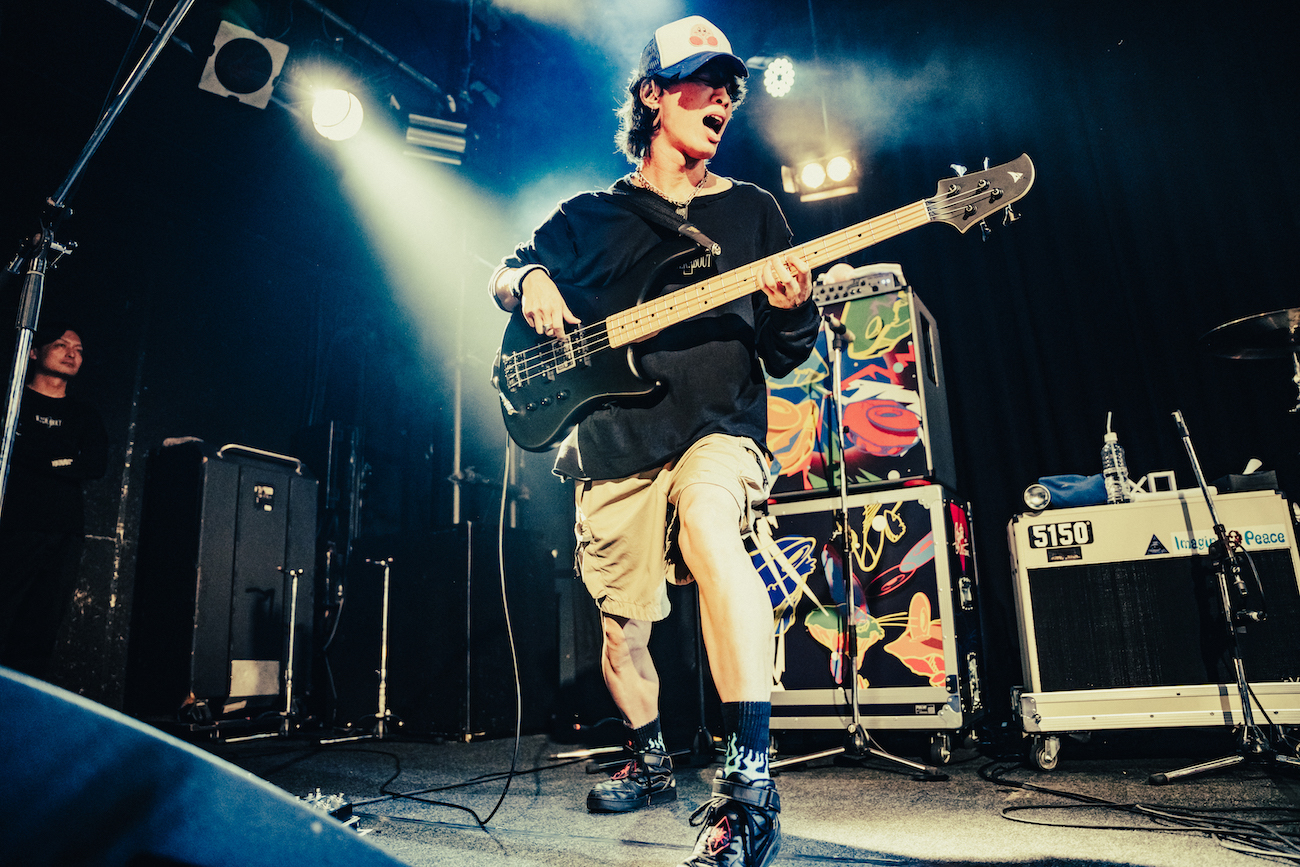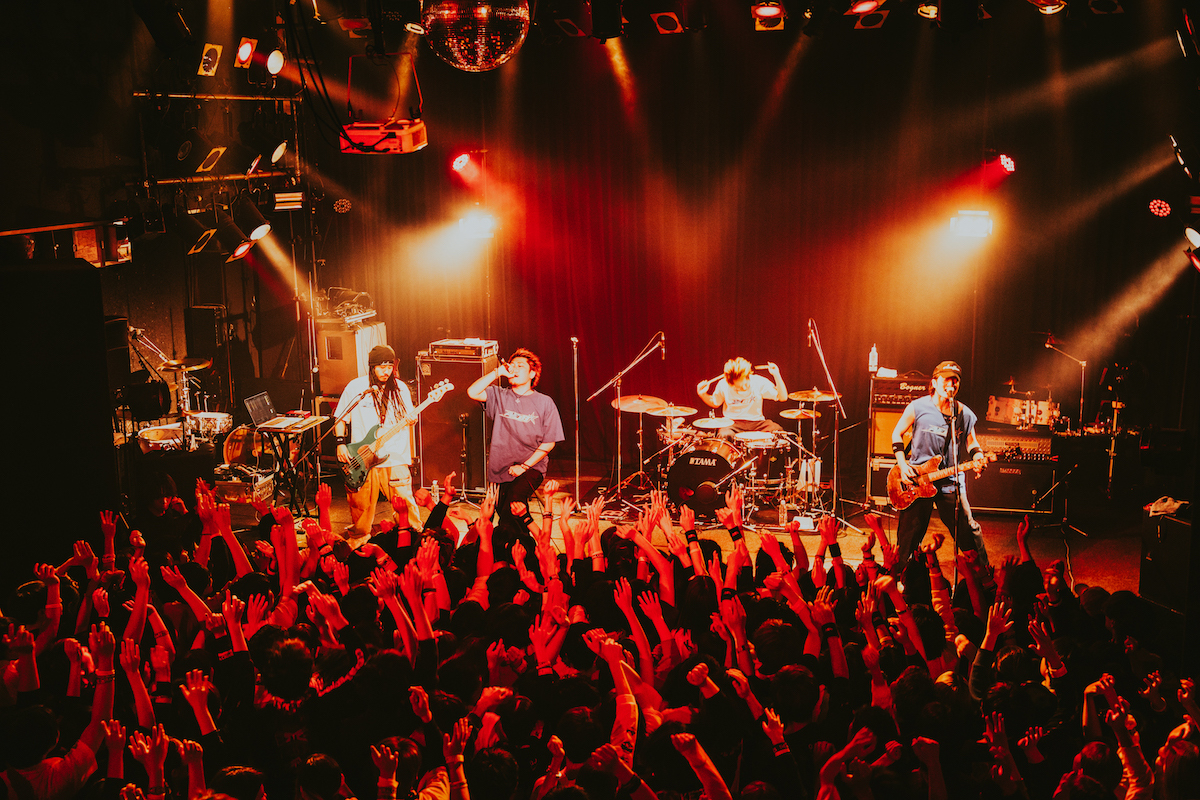 昨年発表したファーストアルバムの曲を中心に演奏した彼ら。重厚なラウドロックサウンドと次々に畳み掛ける野太いラップで、あっという間にオーディエンスの心をつかんだ。初の鹿児島公演とは思えない堂々としたパフォーマンス。新曲「Toxic」はレゲエのリズムに自分たちの音楽遍歴と決意表明を語るリリックが乗り、心地いい。と思いきや爆音のラウドロックへと急展開。その振り幅の大きさにバンドとしての可能性が見て取れる。
