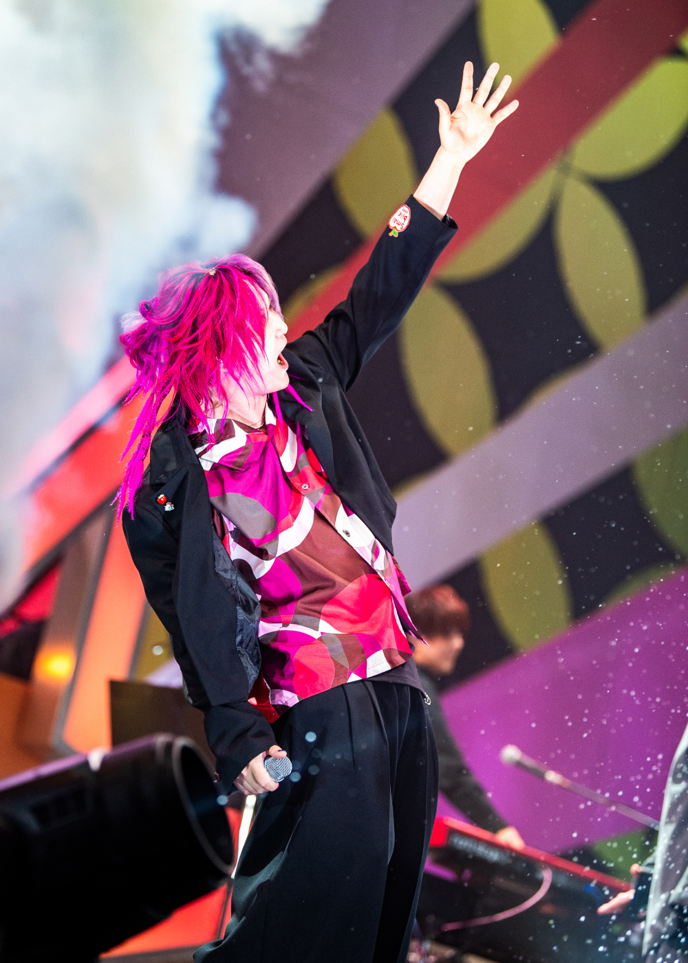 「幕張~~~!」と、元気にめいちゃんが観客に呼びかける。観客は声援とペンライトを振りかざして反応。広い会場を埋め尽くした光景に、あらきもnqrseもめいちゃんも嬉しそうだ。兄貴分のあらきはさらに盛り上げるべく、ソロ曲「ゴーストルール」を投入。イントロに嬌声が上がると、あらきは「後ろの方まで声を出していきましょう!」と煽り、アッパーなロックチューンで熱量を上げていく。観客がペンライトを赤に統一し、あらきのイメージカラーで盛り立てる。