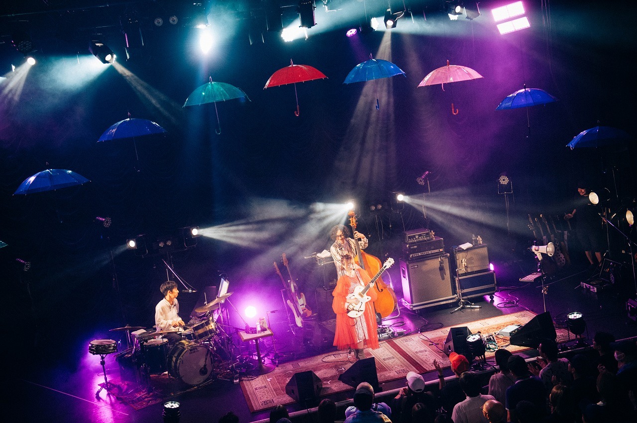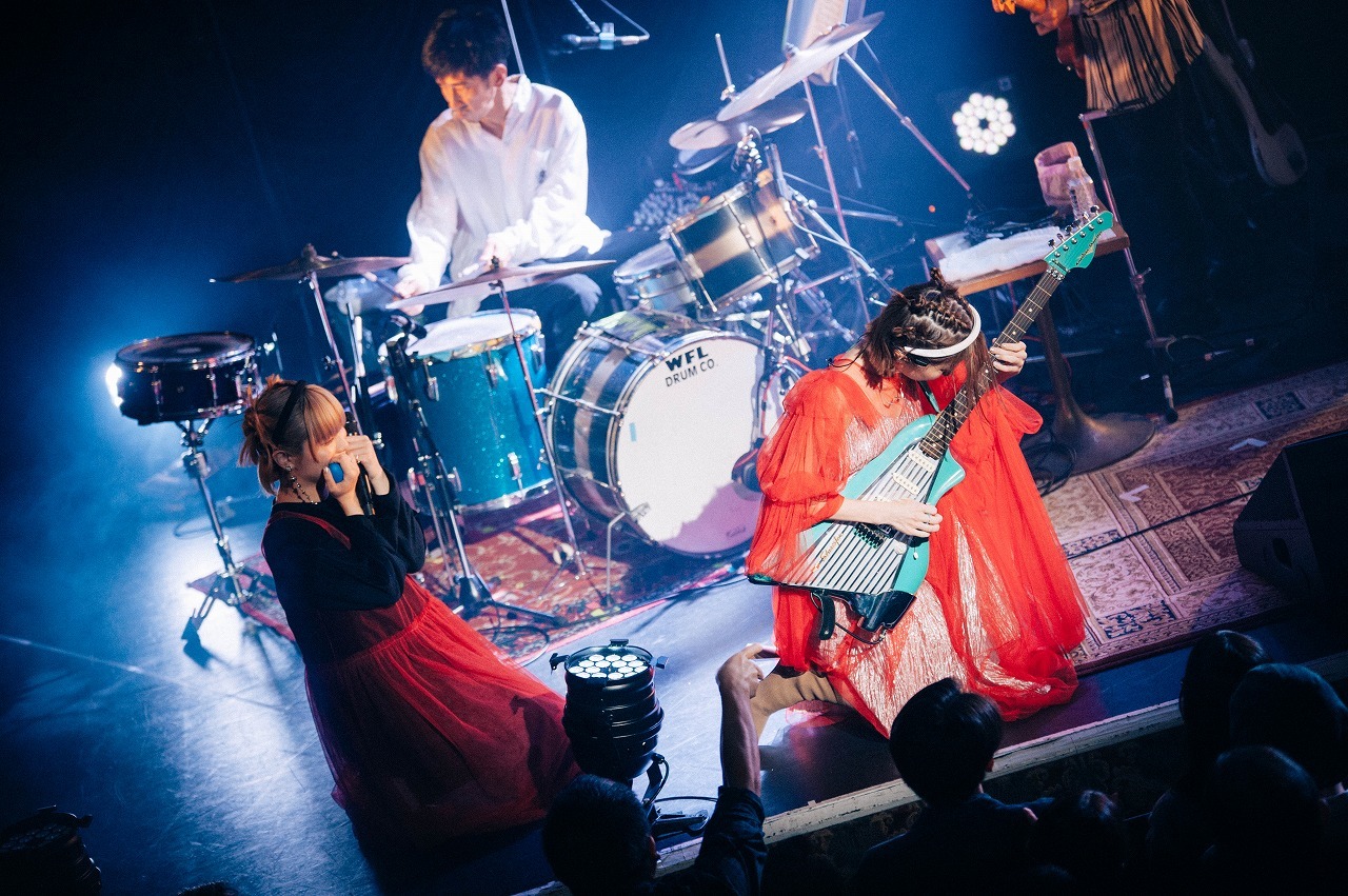 アンコールでは再び吉澤嘉代子をステージに呼び、並んで椅子に腰かけると、「アルバムを出すそうですね?」と吉澤に話を振るRei。「Reiちゃんナタリー」なんて言いつつインタビュアーの役目を担いながら大事なフレンドをもてなし、その魅力をみんなに伝えようともするあたりがReiの優しさであり行き届いた心遣いだ。そしてReiのアコギでしっとりじっくりと持ち曲「東京絶景」を歌う吉澤。甘い喋り声と違って歌声の強さが際立った。最後は伊藤と真船も再び加わって「BLACK BANANA」でもうひと盛り上がり。リスペクトできる仲良し友達がこの世界にいるってことと一緒に演奏できるってこと。ステージ上のその喜びが会場全体に浸透した幸福な夜だった。