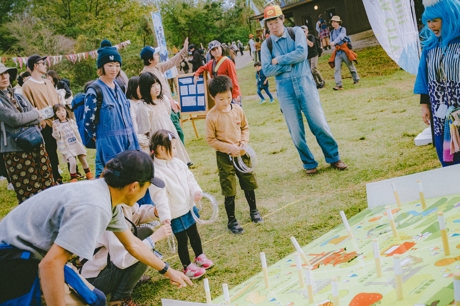「朝霧ランド」では、富士宮市役所と子育て支援NPO・母力向上委員会が子連れ来場者を手厚くサポート。街の魅力をアピールする輪投げゲームや、本門寺重須孝行太鼓保存会による「太鼓ワークショップ」にはたくさんの子どもたちが参加していました。
