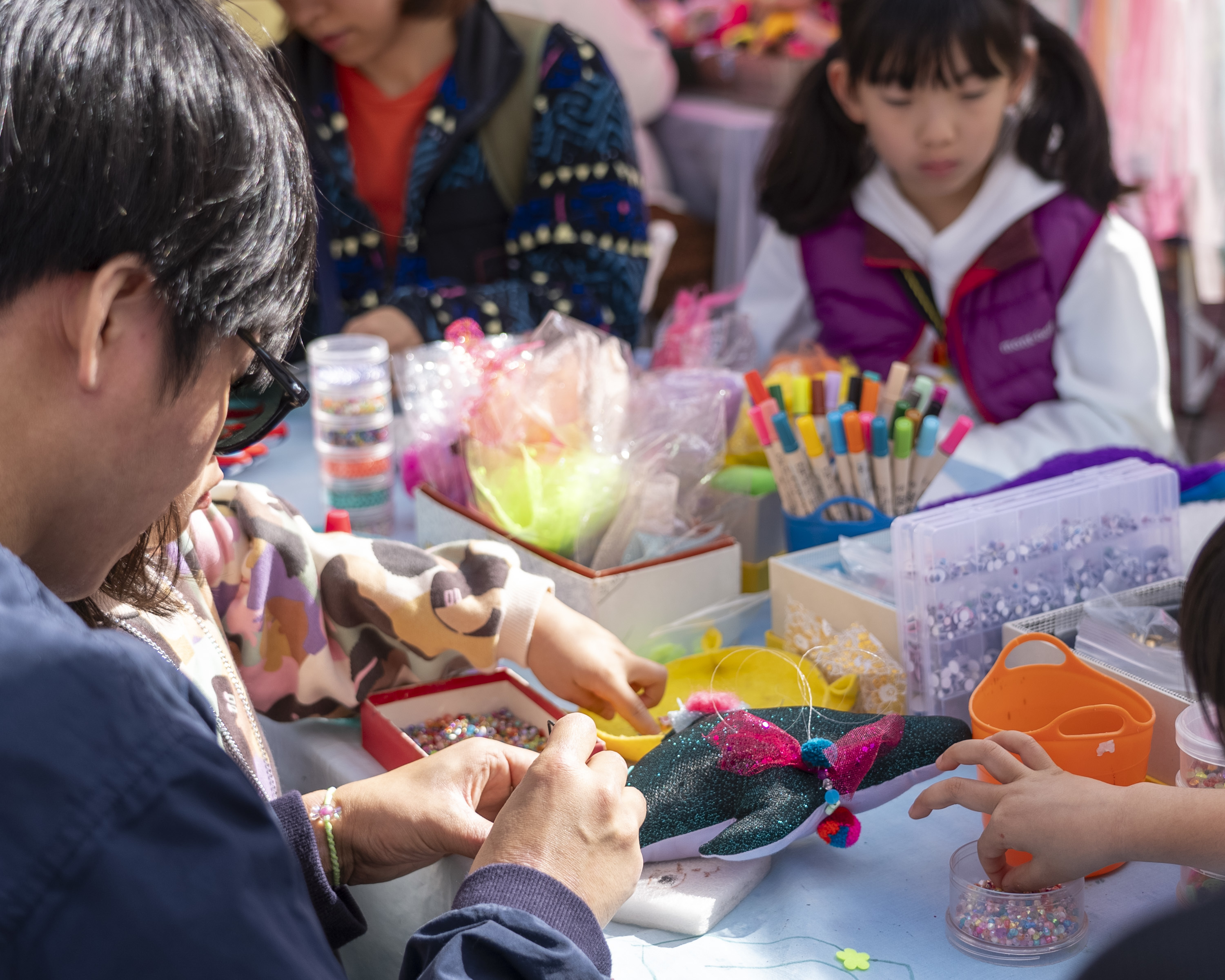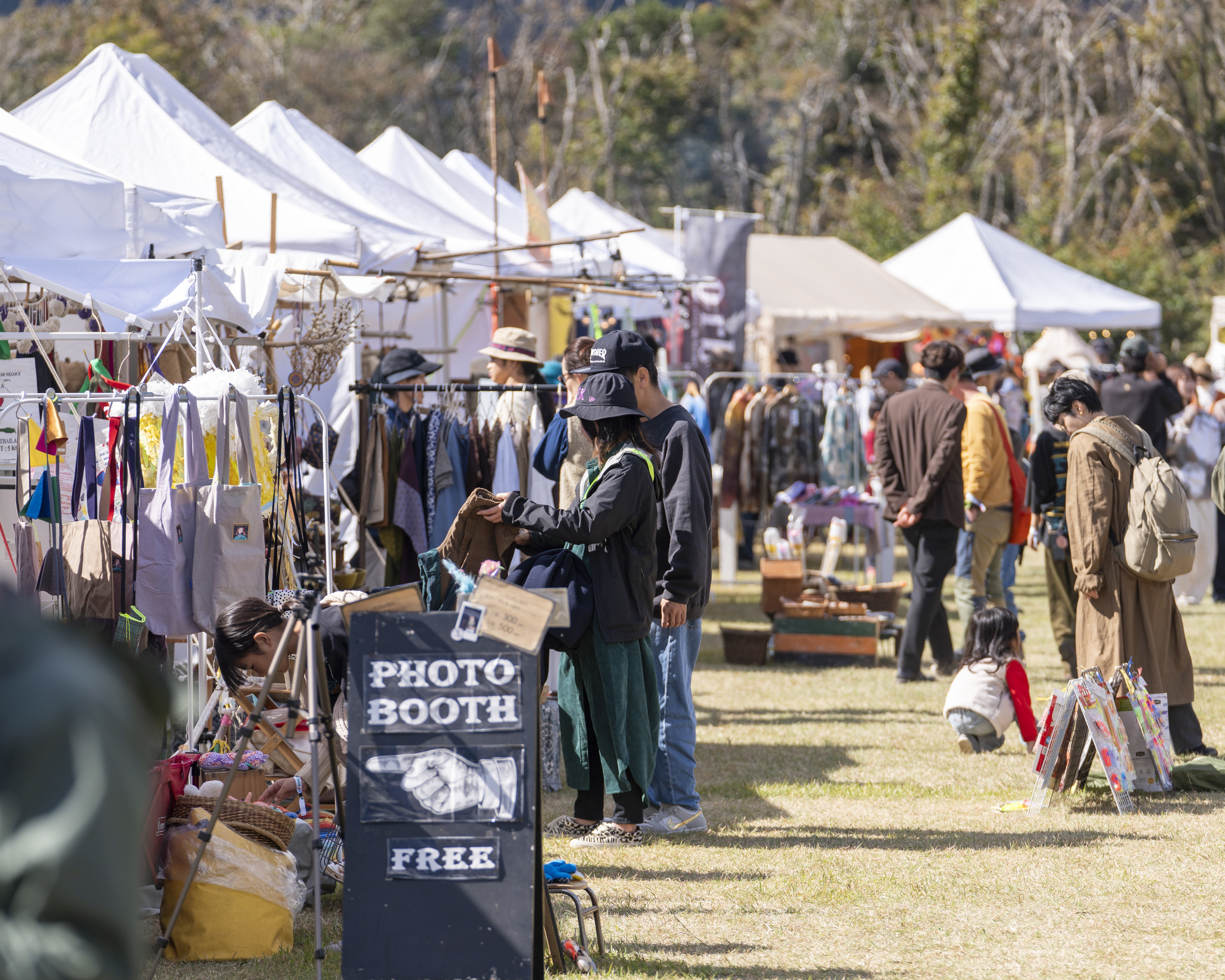 MOONSHINE STAGEエリアでは、ライブの合間にショッピングができるマーケットがあり、富士山をあしらった帽子やバッグ、小物などを扱うハンドメイドのお店や、防寒にも使えるおしゃれなウール素材の服を販売するお店などが軒を連ねていました。ワークショップも充実していて、ぬいぐるみ作りに夢中になる人が多く見られました。気軽に話せる店員さんやスタッフとのコミュニケーションも『朝霧JAM』の魅力のひとつです。