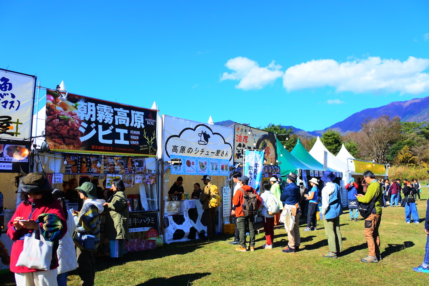 「朝霧高原の牛乳を飲もうキャンペーン」では無料で牛乳を配布。整理券は早々に終了していたので、お店で購入しておいしくいただきました。その際、“寒いときに飲むホットミルク、最高!”と語る子どもの言葉を耳にしたのですが、それは大人が『フジロック』で言うところの“暑いときに飲むビール、最高!”の同義語だなと思えて“その気持ちわかるよ”と深く頷いたのでした。