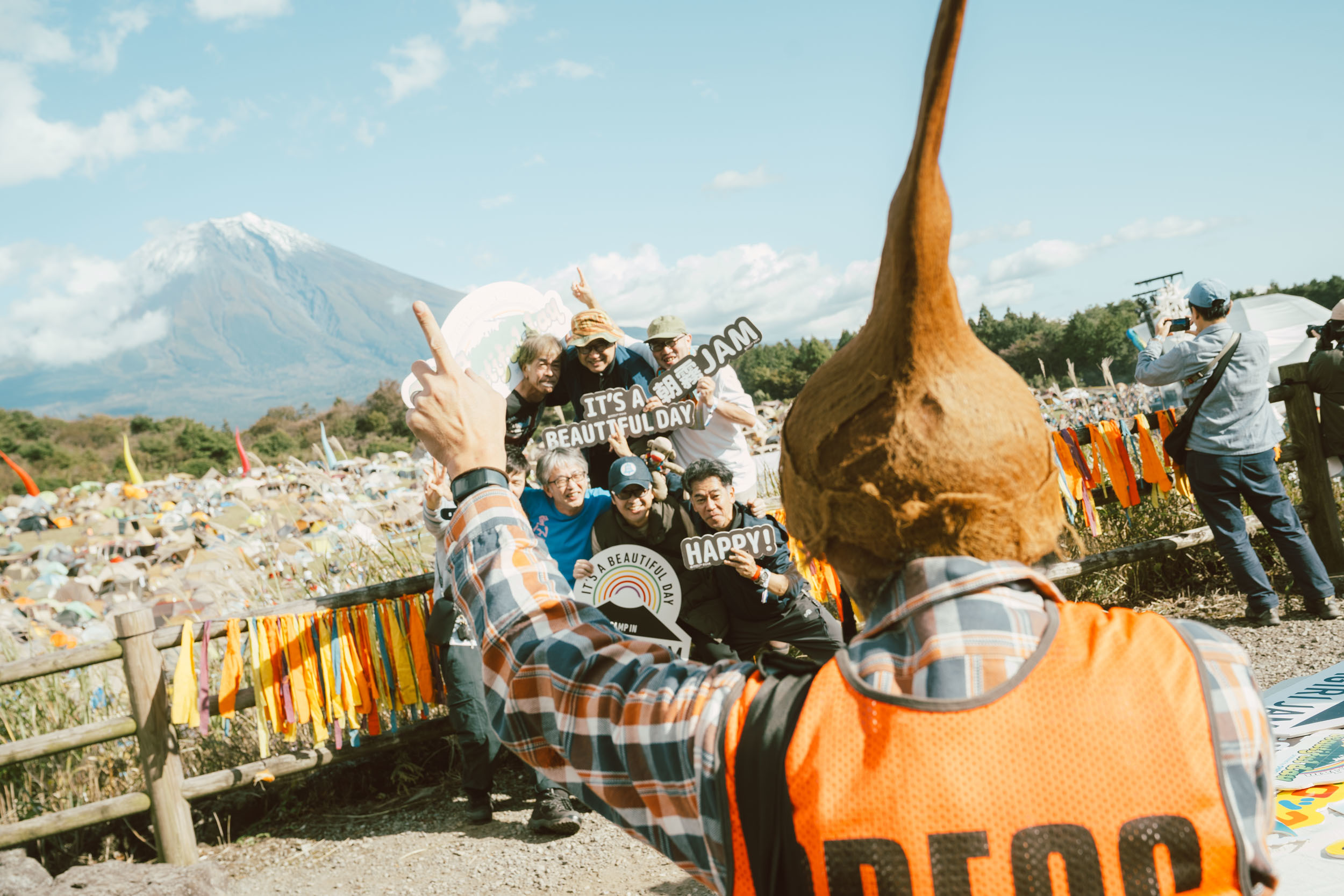 そんな宇宙大使マザーシップでは、宇宙大使ファミリーが富士山とフェスサイトを背景にしたベストショットを撮るお手伝いをされていました。一人参加や小さな子ども連れだと諦めがちな記念写真も、ホスピタリティ溢れる『朝霧JAM』なら気軽に手に入れられます。