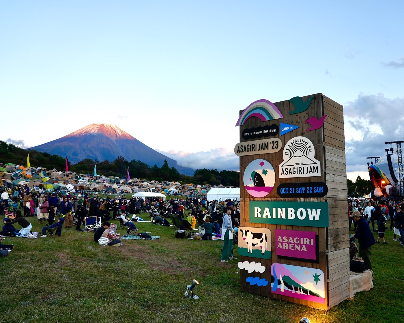 『~It’s a beautiful day~ Camp in ASAGIRI JAM’23』(以下、朝霧JAM)が、10月21日、22日に静岡県富士宮市の朝霧アリーナ・ふもとっぱらで開催されました。開催20回目を迎えた今回は、国内外から総勢28組のアーティストが富士山麓に集結。記念すべき節目をジャンルレスな音楽で大いに祝い、盛り上げました。また両日とも天候に恵まれ、昼間は美しい富士山を、夜には流星群までもが出現! そんな音楽と大自然に魅せられた2泊3日の『朝霧JAM』を振り返ります。