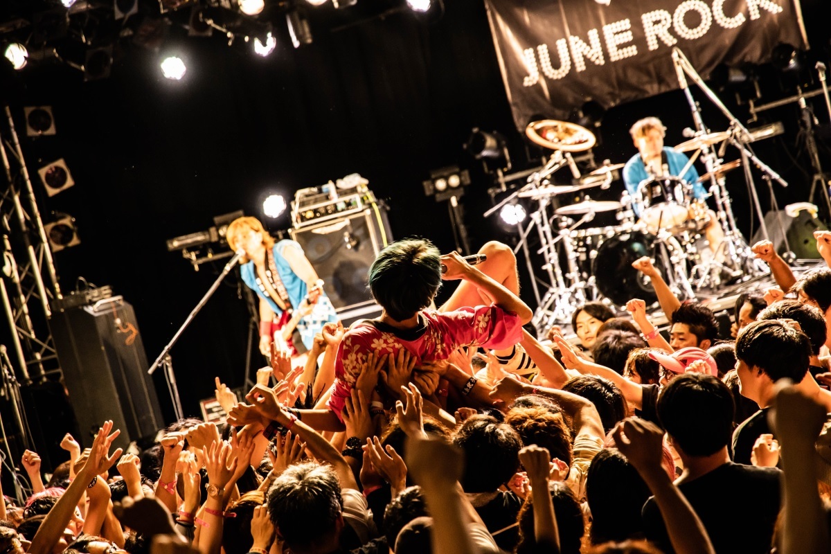 初日の終幕が近づく頃。Shinjuku BLAZEのトリには、四星球が登場した。この日のShinjuku BLAZEは、『JUNE ROCK』とのコラボステージ。三浦ジュン氏(フジテレビ音楽番組プロデューサー)も駆けつけ、出演者とともに会場を盛り上げた。サウンドチェックでは、銀杏BOYZの「BABY BABY」を同氏がリクエスト。現地だからこそ味わえるご褒美に、ファンは感激したに違いない。