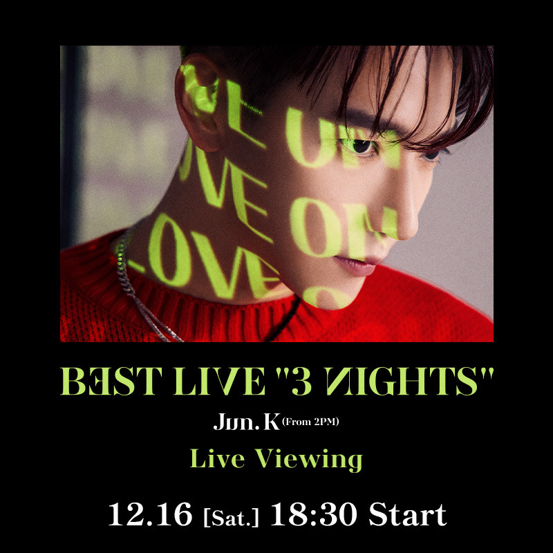Jun. K(From 2PM)のソロ作品としては『THIS IS NOT A SONG』以来約2年ぶりとなる、初のベストアルバム『THE BEST』の発売が12月13日に決定している。代表曲がたっぷり詰まったベストアルバムで、今回のライブでは最新曲の披露も期待される。