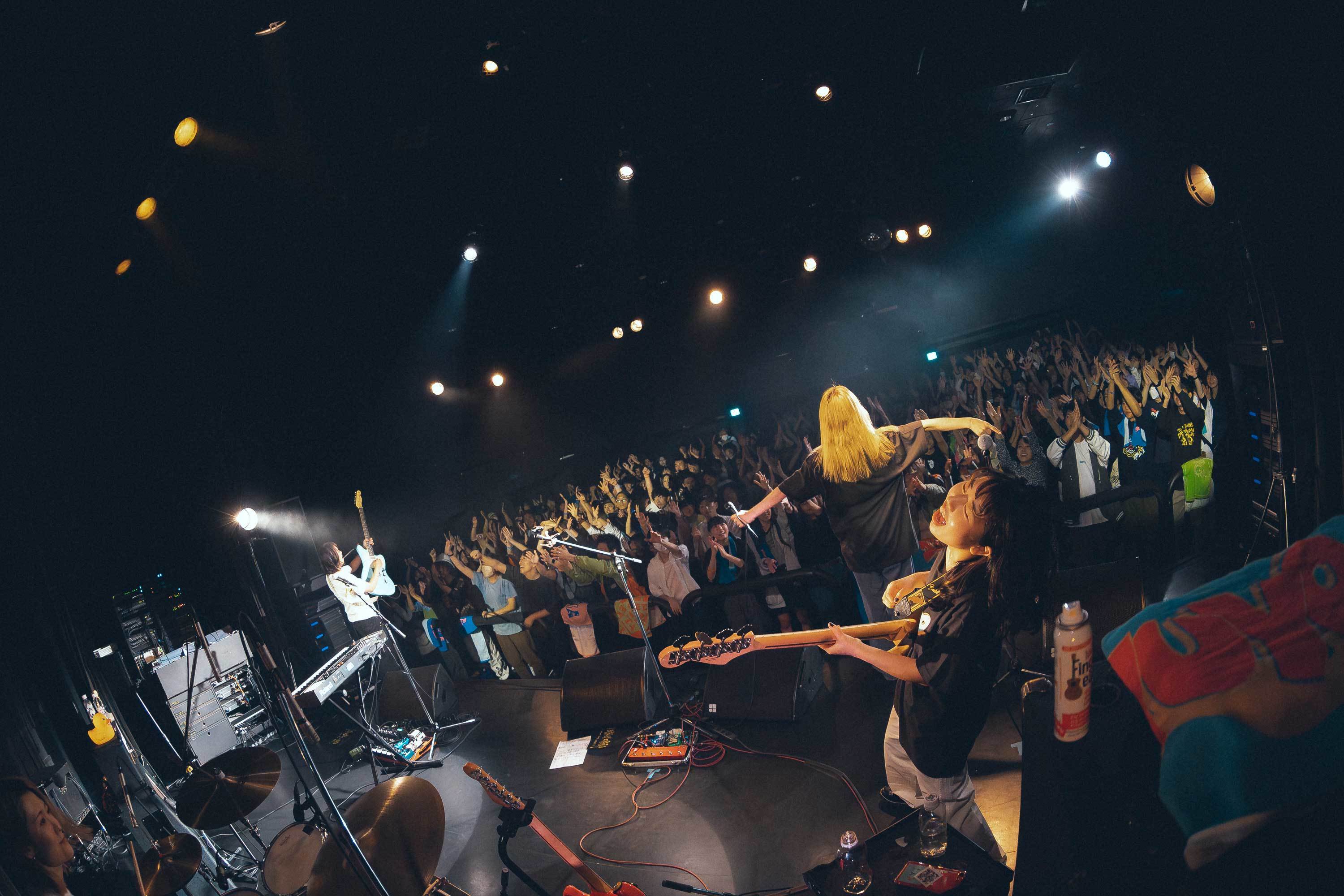 そうして後半に突入。はなの奏でる、ファンのみんなは聴き慣れているであろうベースリフが導くのは「ユー!」。リコがワンコーラス歌ったあと、「せーの!」と言うと、フロアから大音量の「ユー!」が返ってきた。「最高! さすが東京!」とメンバーも観客も笑顔の中、バンドインとともに曲がスタート。観客の声を少しでも近くで聴きたいからか、ギリギリまで前の方に出てきたり、しきりに「〇」とサインを送っていたりと、とにかくメンバーは嬉しそうで、バンドのサウンドもいきいきと弾んでいた。