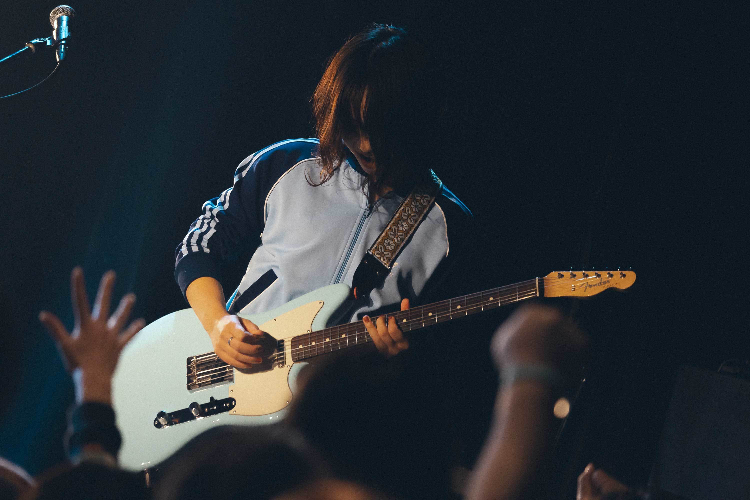 そして「貴方の一番のロックスターになれますように」という言葉から始まったのは「星に願いを」だ。曲の歌詞に引っ掛けたMCがフロアの期待を増幅させ、会場の温度がさらに上がっていく。ぺっぺのギターソロもアグレッシブだ。ここで一旦「POOL」を挟み、会場の空気を変えると、「今日はあなたの笑顔を見に来ました! ツアーファイナルなので、一番の笑顔を見せてください!」と「kimi_no_egao」へ。そして『SALTY』収録の新曲「チョコミンツ」で前半を締め括った。