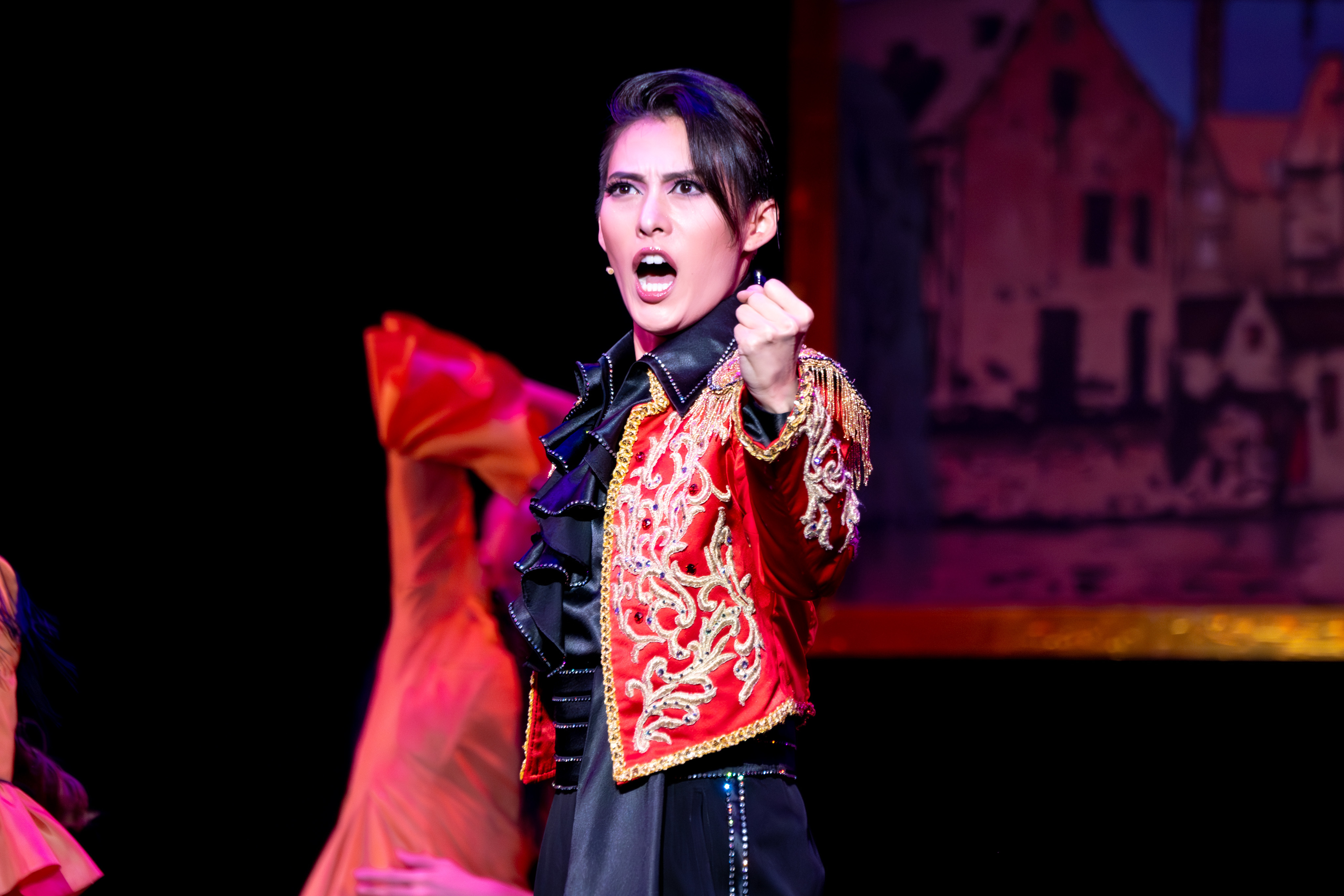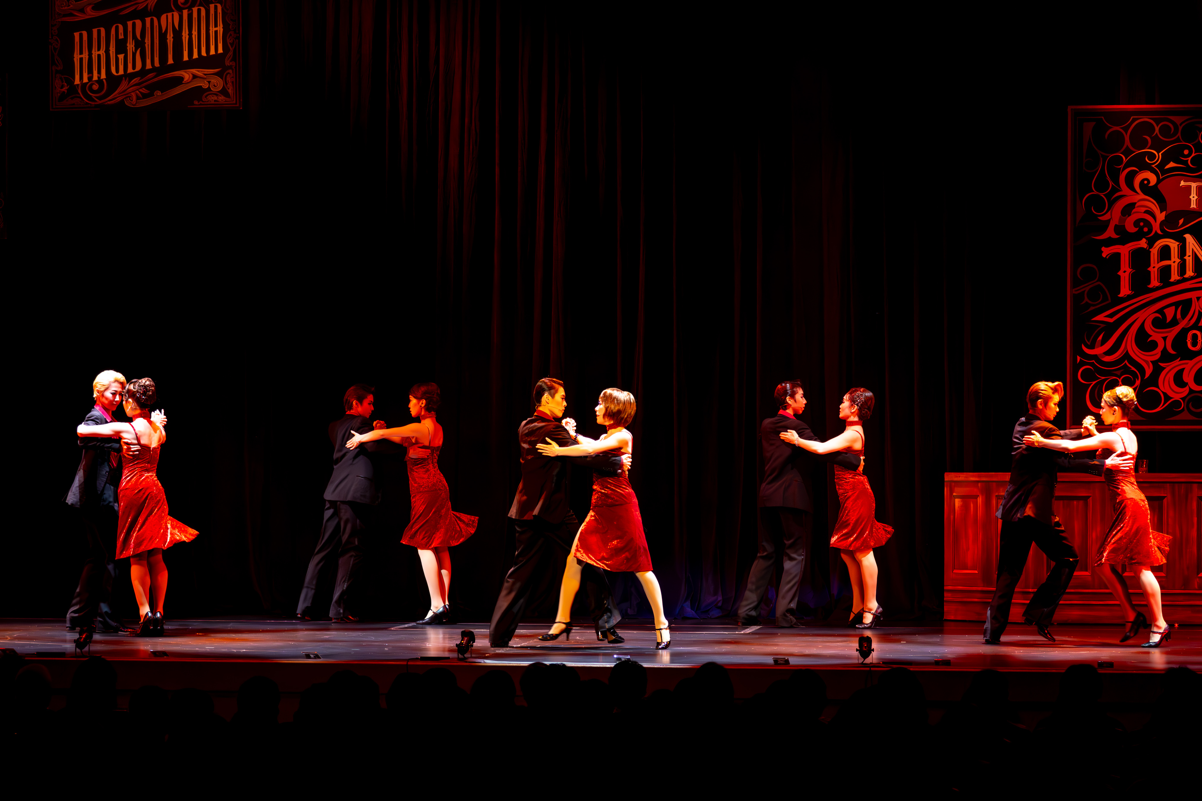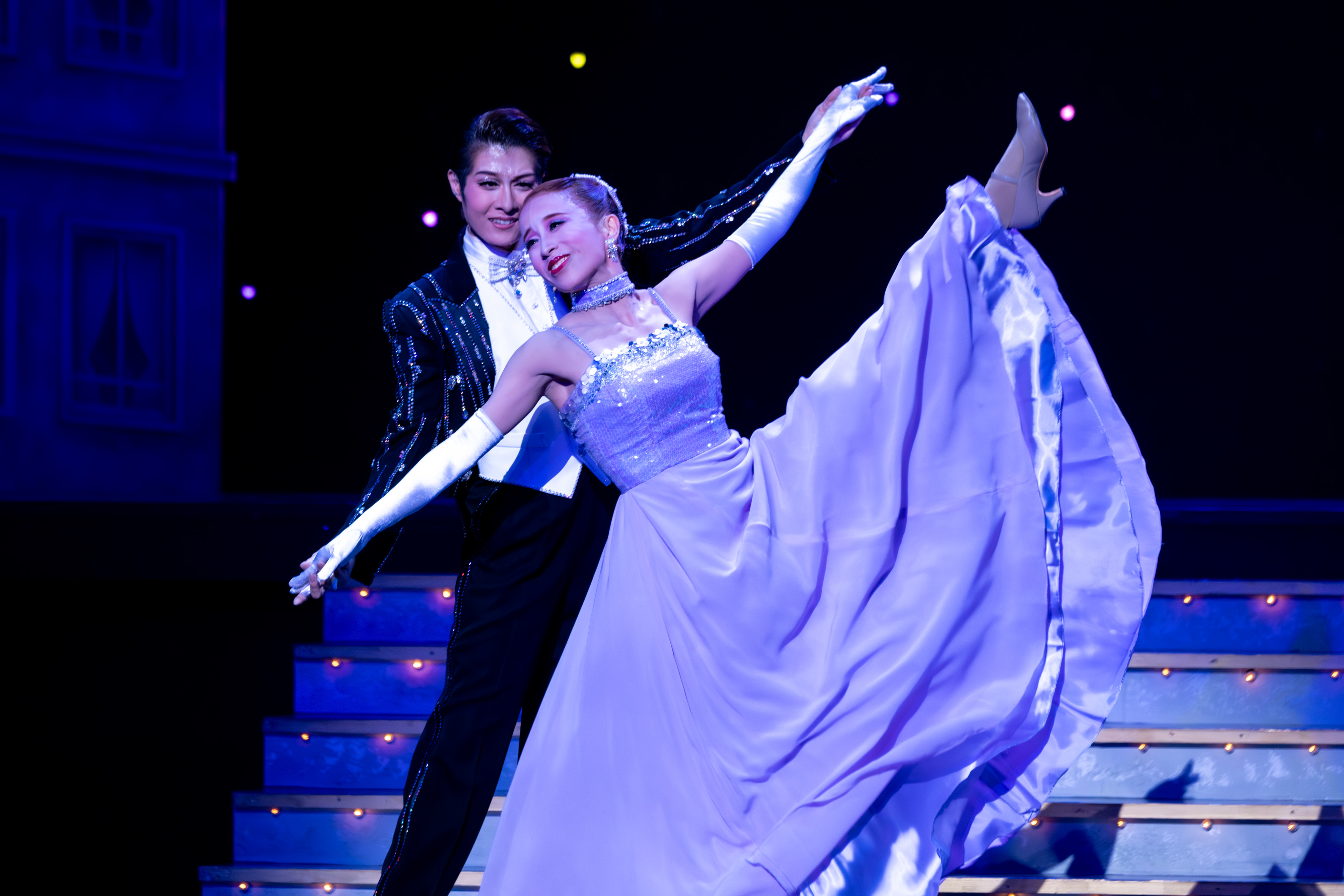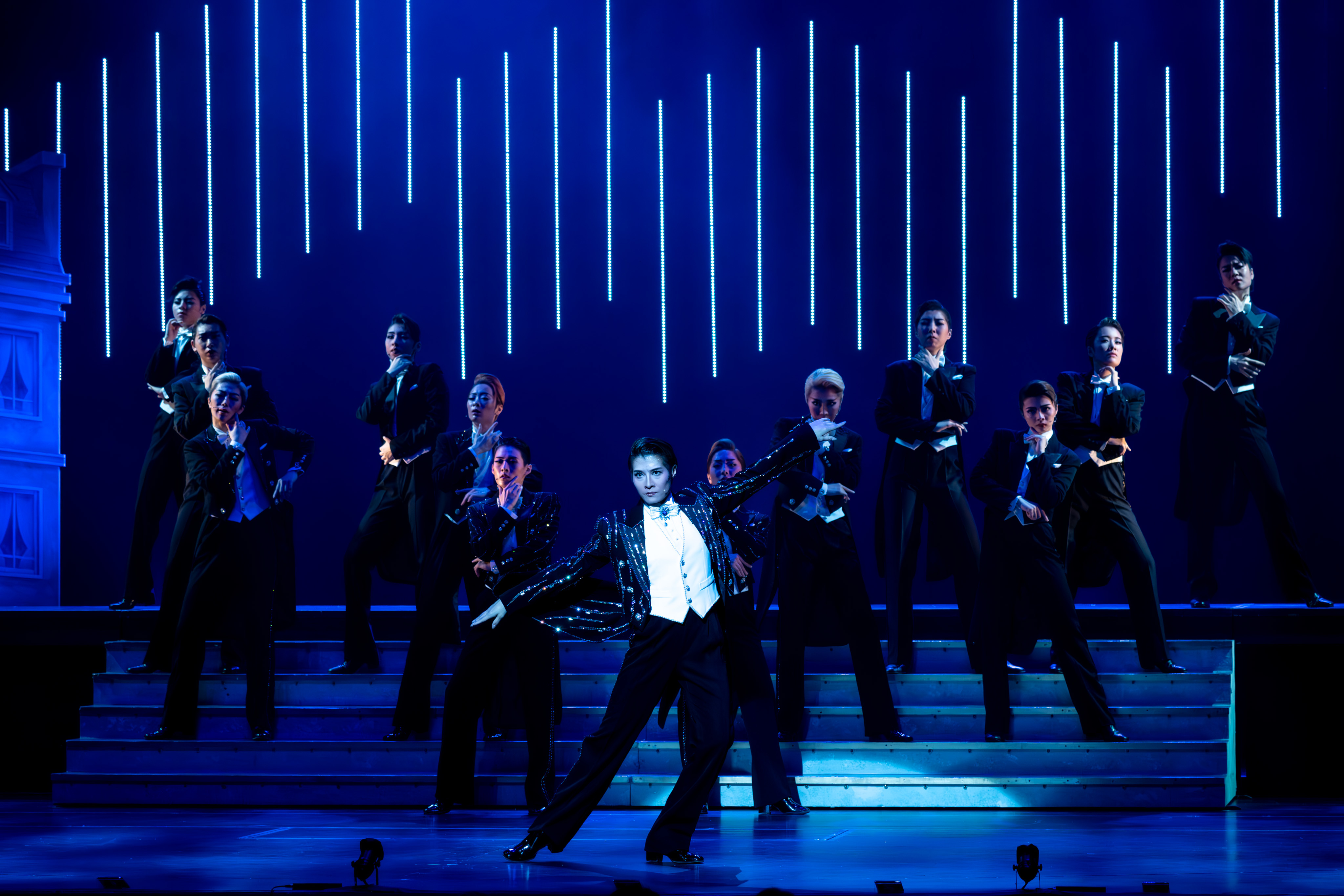 ここからは「ダンスのOSK」にふさわしい、バラエティに富んだダンスシーンの連打だ。アルゼンチンタンゴでクールに決める「ひと夜の戯れ」、ストリート感にあふれるヒップホップダンスが異色の「ここが僕たちのベスト・プレイス」(華月のレペゼン京都のラップがあざやか!)、これぞ歌劇の群舞の王道「スタイリッシュに決めて」、情熱的なフラメンコの熱さにクラクラしそうな「Passion」と、まったく観客の気持ちをゆるめる隙がない。なかでもキュートなチアリーダーたちが、『ブギウギ』でも大評判となった名物の高速ラインダンスを見せる「KYEE」は、奇跡的なまでの一糸乱れなさに思わず拍手喝采だ。