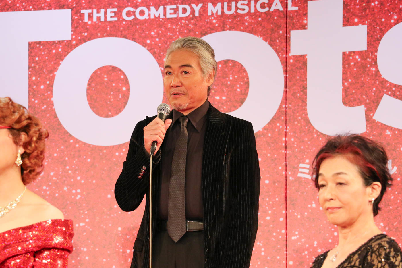 この素晴らしいカンパニーの一員としてここに立てていることを、本当に嬉しく光栄に思っております。僕自身も『トッツィー』を楽しみたいということしか浮かんできません。音楽も、こういう情熱的な赤という色に囲まれて舞台に立てることも、すごく嬉しく思っております。よろしくお願いいたします。