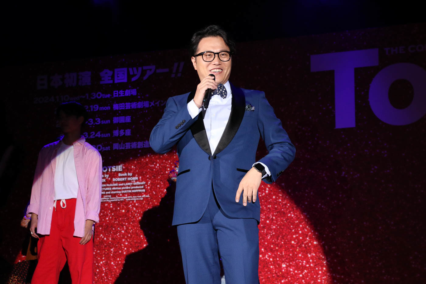 いよいよミュージカル『トッツィー』が来年開幕ということで、すごくワクワクしております。今回のミュージカルの出演者は、私も含めてみんな厳しいオーディションを通って集まったメンバーでございます。華やかで、楽曲も美しくて、本も笑えて、ミュージカルの素晴らしさが全て詰まっている作品でございますので、2024年は『トッツィー』がみなさまと一緒に最高のスタートを切れればなと思っております。日生劇場はチケットが完売ということで、これは地方公演向けの製作発表となっております。大阪、名古屋、福岡、岡山と、みなさまどうぞよろしくお願いします。