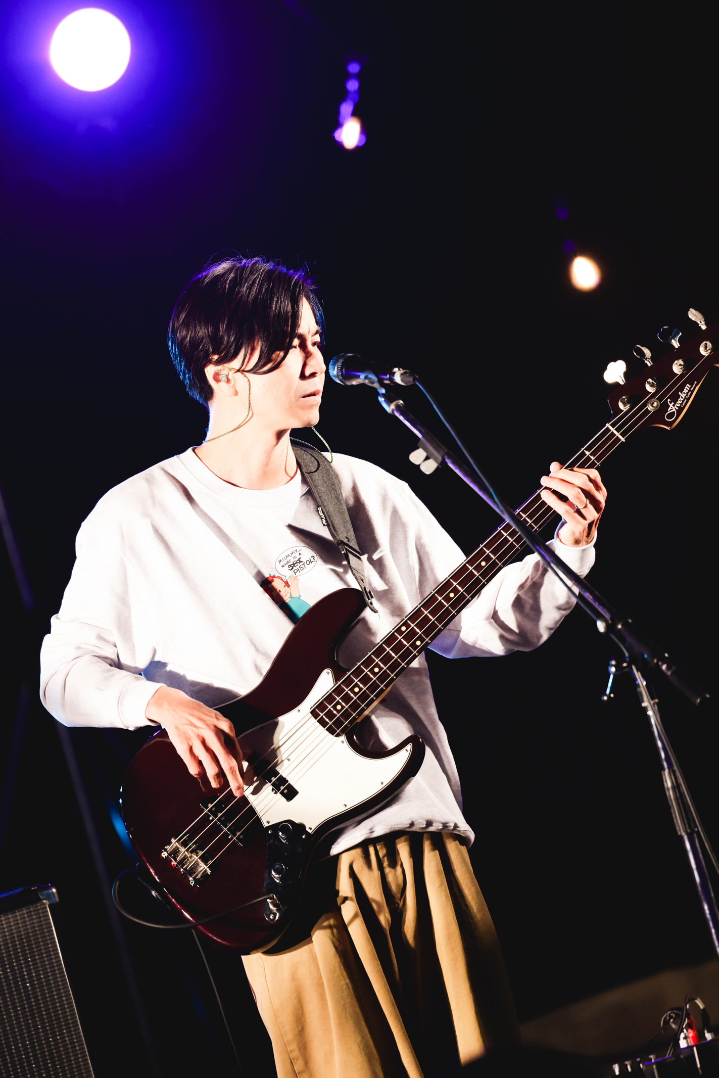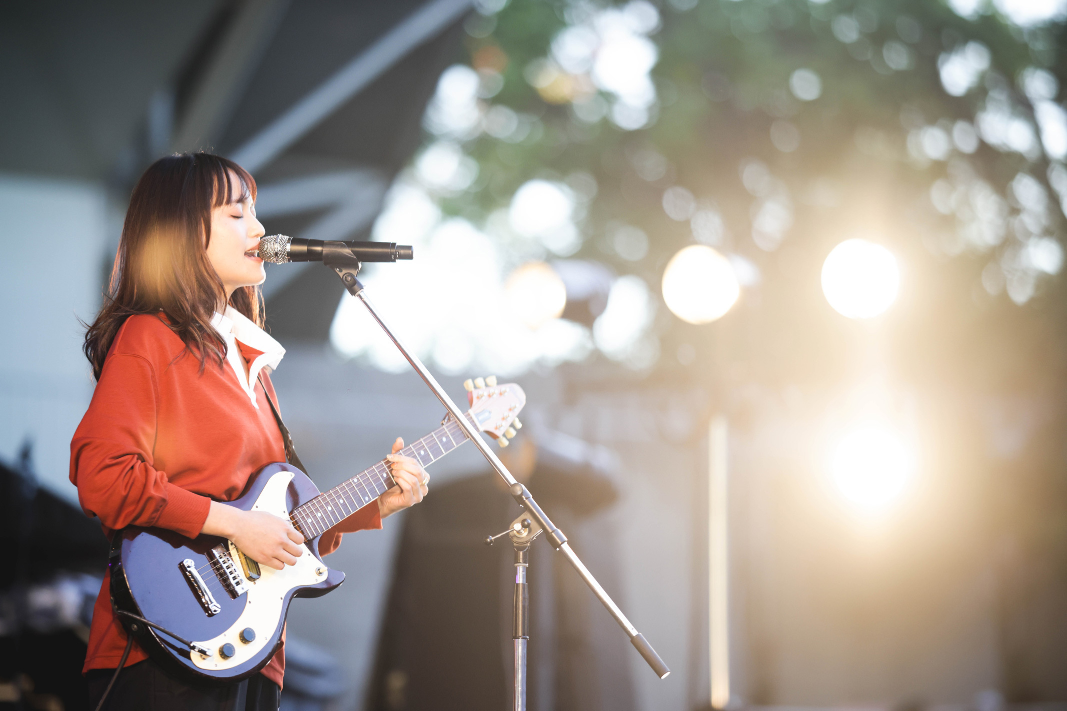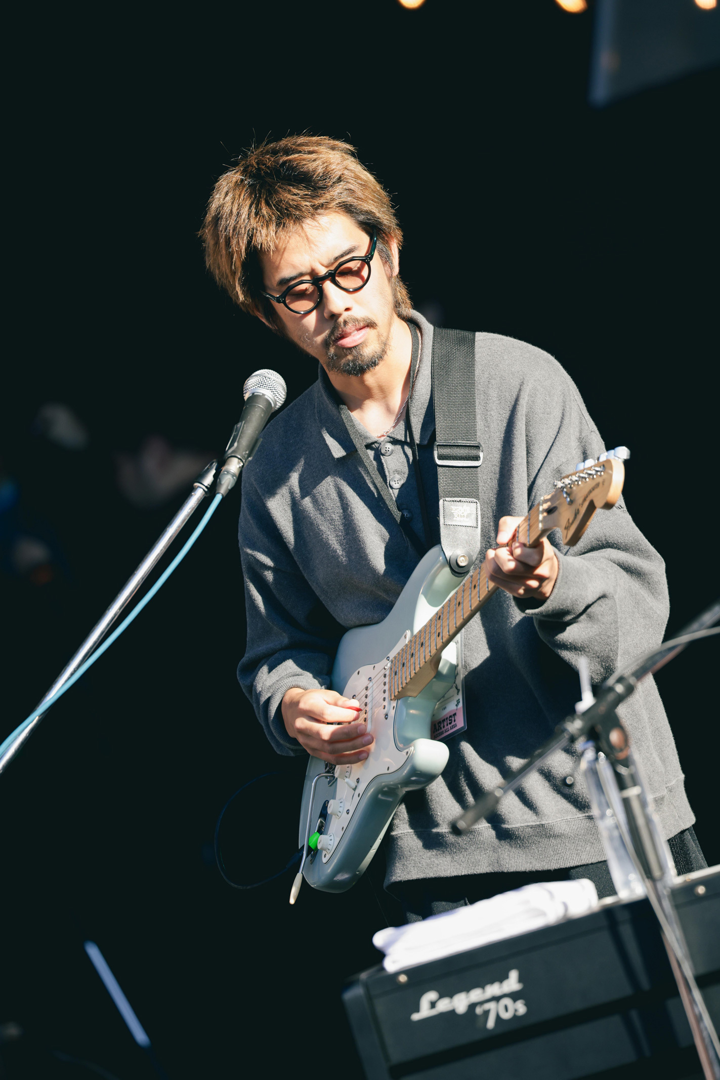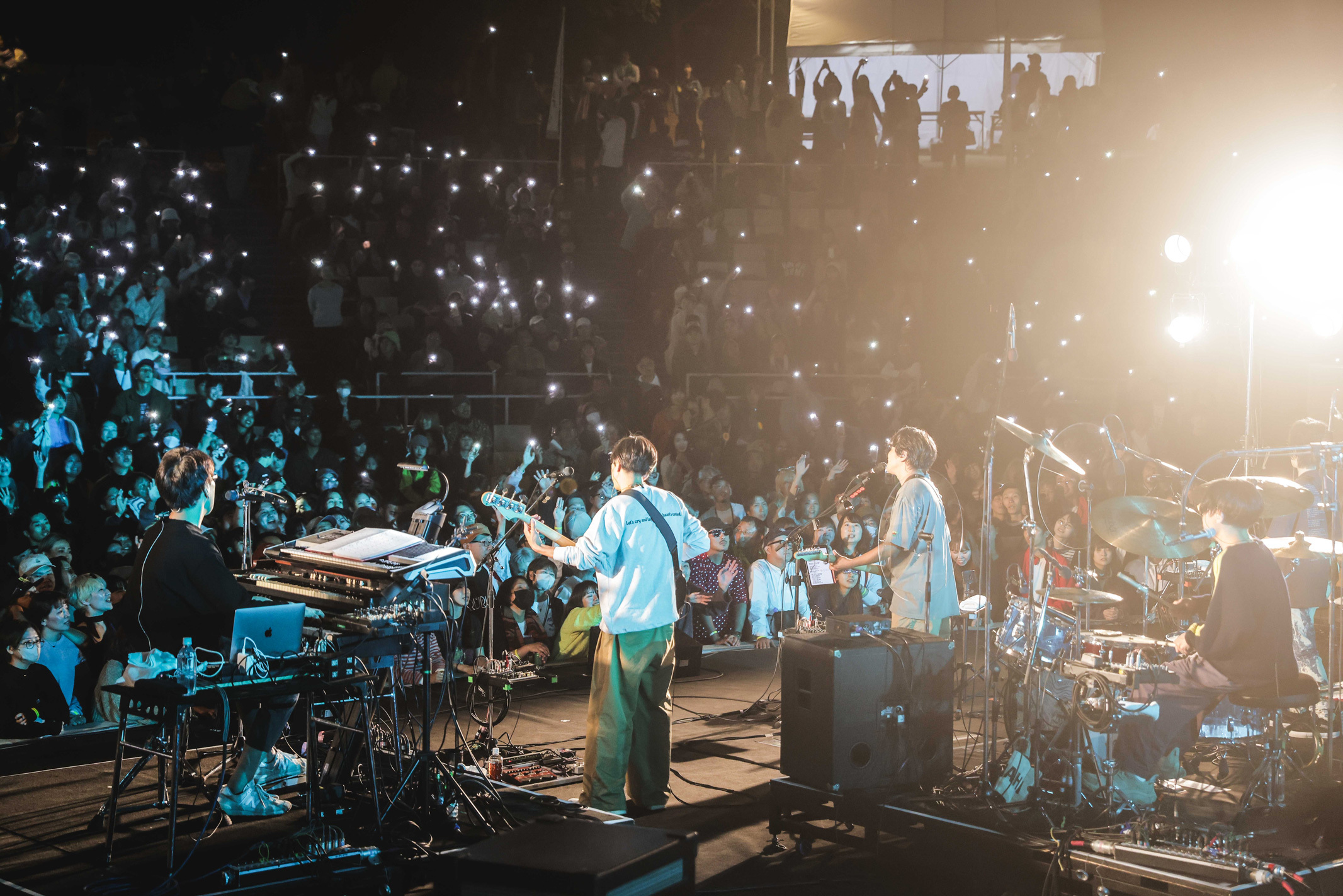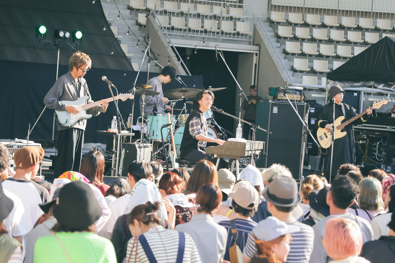 「最高のマンデー!」と叫び、観客の士気を高めて次曲「good job」へ。これまたゆるりとリラクシンなバンドサウンドで、芝生エリアではうっかり眠りに落ちてしまう人の姿も(起きて!もったいないから!)。田中慧(Ba)のベースラインがずっと耳の奥を気持ちよく揺らしていく。