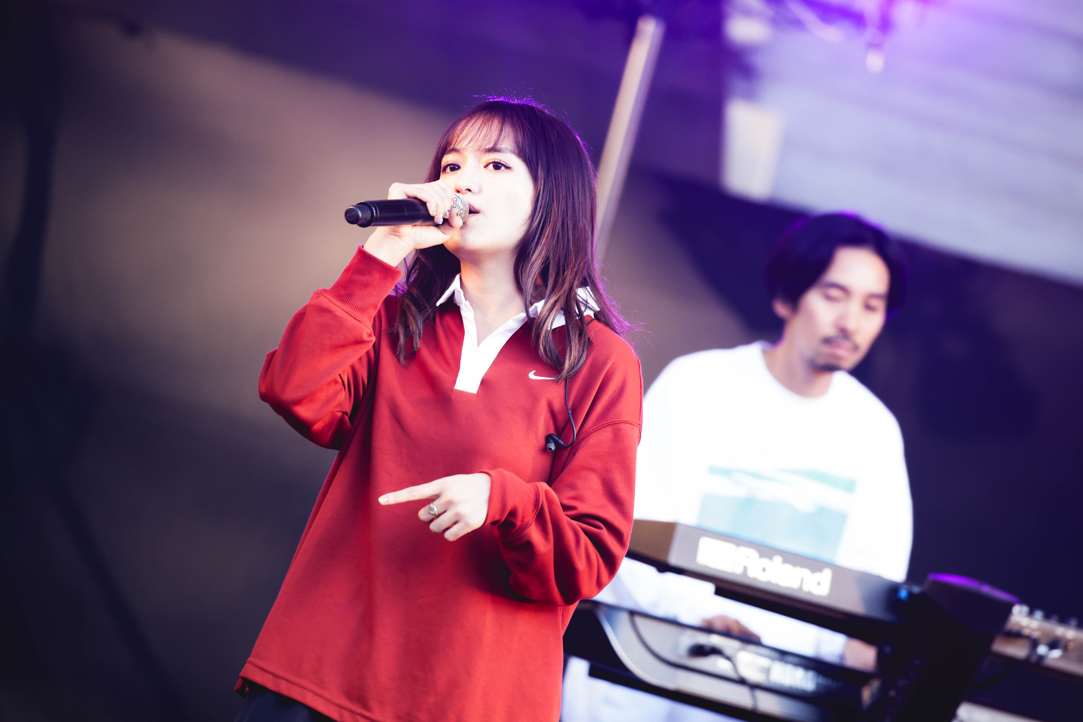 あまりの暑さにアウターを脱ぎ捨てると、そこからさらに心地よく体を揺らす楽曲陣で観客を躍らせていく。緩やかなビートとボーカルが、ずっと気持ち良いところばっかりをくすぐってくる。ハイすぎるのでも、ローすぎるのでもない。ちょうどえぇ塩梅な歌声がとにかくリラクシンな気分にさせる。
