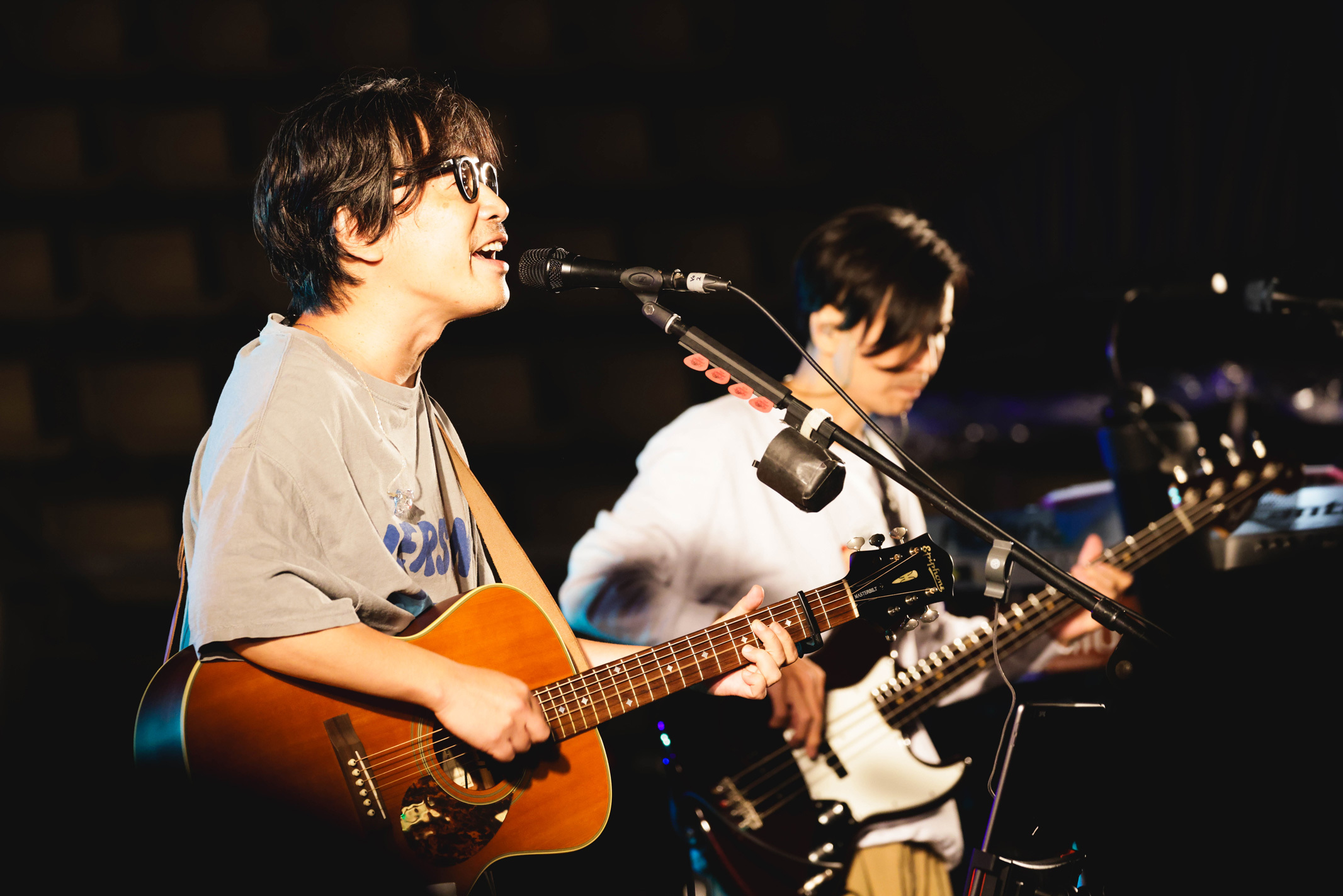 ぐっと暗くなった会場に響く「太陽のブルース」では、歌詞がじわりと心を刺す。明日は変わらずやってくるけど、ちょっとだけ張り切っていきたくなる。ガソリンみたいな勢いある感じではなくて、毎日のご飯みたいな。今日はちょっとえぇごはん食べた、そんな気分になれる音楽が鳴り響いている。