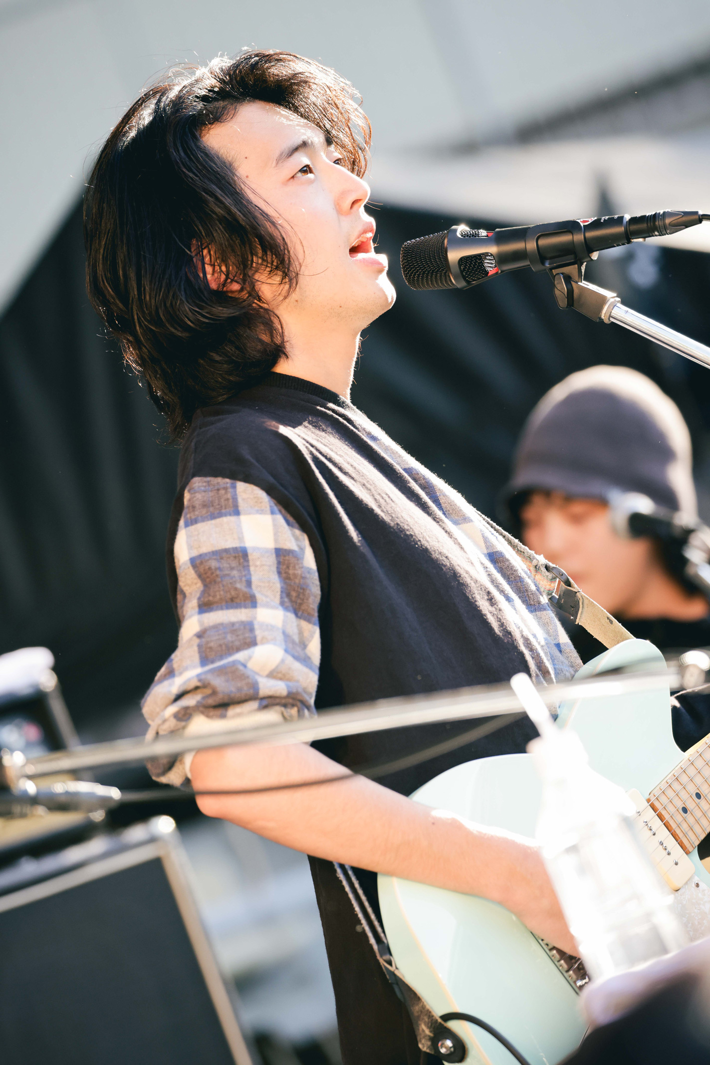 トップバッターは奇妙礼太郎のステージから。「よろしくです」。ラフに挨拶を交わすと、饗宴の幕開けにぴったりな「オンリーユー」でライブスタート。会場にブワっと広がる心地よい声が響き渡った瞬間、観客が一斉に歓声を上げる。この日はバンドセットでのステージ。ご機嫌なギターサウンド、体を心地よく揺さぶるリズムを身にまといながら、ビールをぐっと煽る。なんて最高な1日の始まりだろうか。
