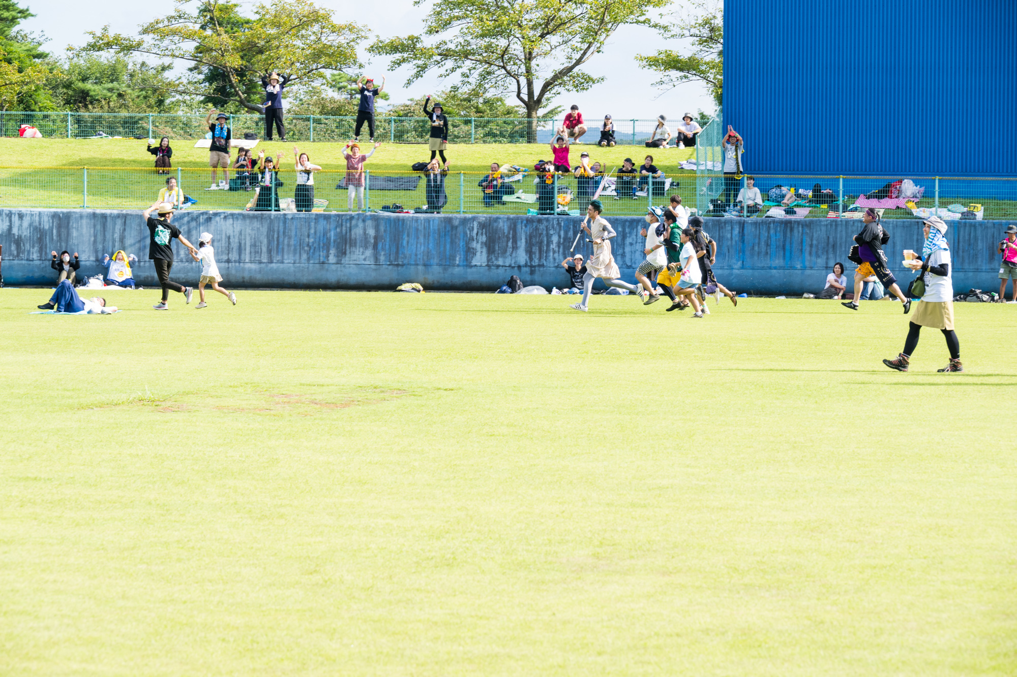 そっからの2日目芋野球も初日同様に真剣本気での大茶番劇だった。書こうと思えば、いくらでも小ネタはまだまだ書けるのだが、それは来年あなたが実際に『風とロック芋煮会』を訪れて、その目で目撃して欲しい。ちゃんとしていない事を、ちゃんとしている唯一無二の稀有な奇祭。ひとつ書き残したことと言えば、芋煮会と名乗っているだけあって、1日に何回か無料で芋煮が振る舞われる。鍋で煮込まれた具と味噌は本当に温かい。そう、それは『風とロック芋煮会』の縮図でもある。別に上手く言いたくて、この文章を書いているわけではないので、このあたりで終わりますが、とにかく来年は福島県に足を運んで、じっくりと『風とロック芋煮会』に煮込まれて下さい。おあとがよろしいようで。