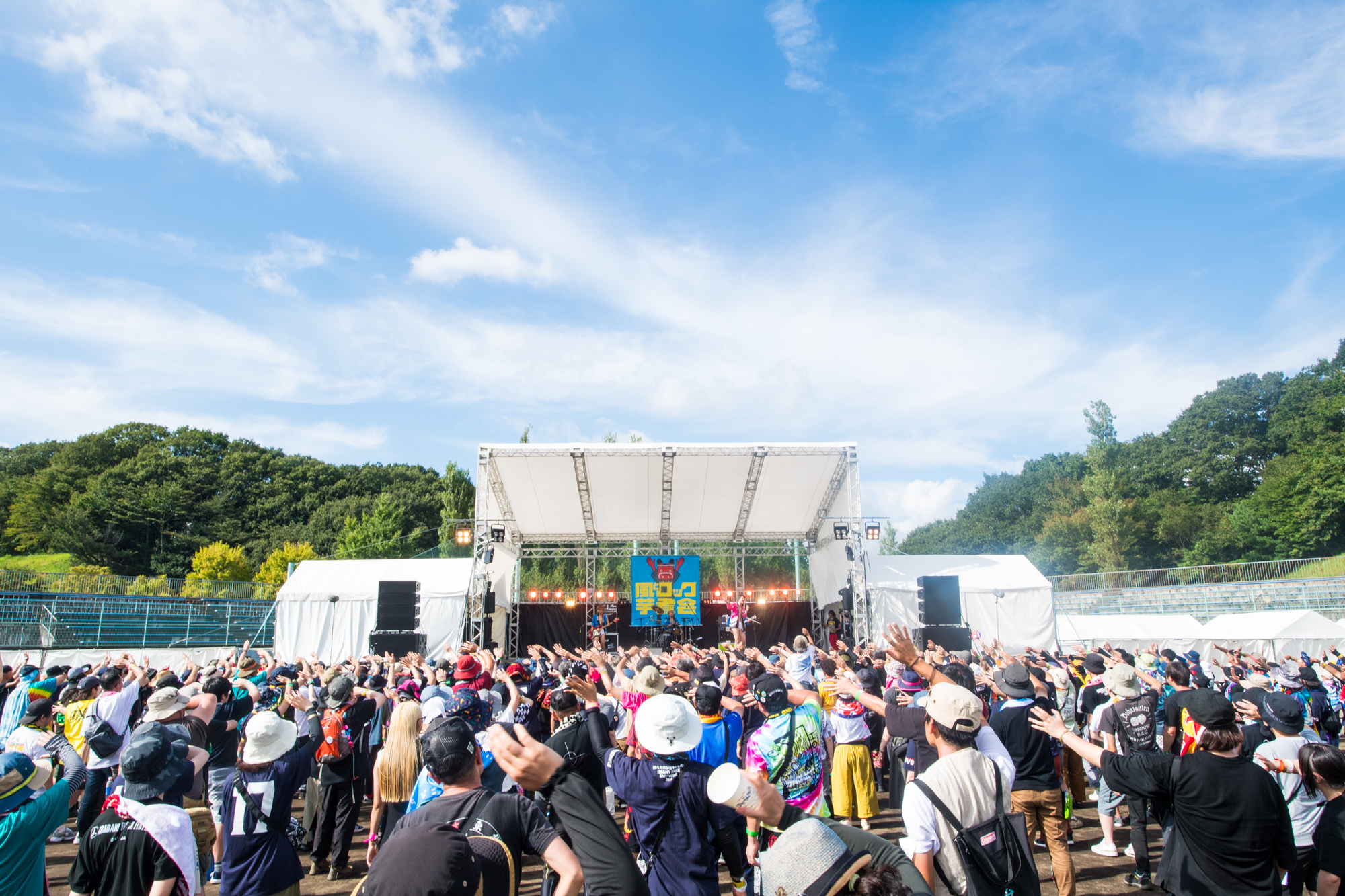それを具現化したような光景。押しつけがましくなく自然に、そういう事を感じられる場は本当に貴重だ。夕方4時過ぎにはメインステージがオールアップしている事にはビックリするが、まだメインイベントは控えているし、「ステージ白河だるま」では奈良が「ならよしともの子供ロック部(DJ)」として、横向きに置かれた机の上にあるパソコンを横向きに座りながら触り、昭和歌謡を中心に1曲1曲丁寧に説明しながらDJしている。こんなDJスタイルは観たことないし、学生時代から大好きで作品を観てきた奈良が普通に観客と同化しながら、その場にいることにおったまげながらも、それを普通に実現させている村祭りの凄みを感じるしかない。