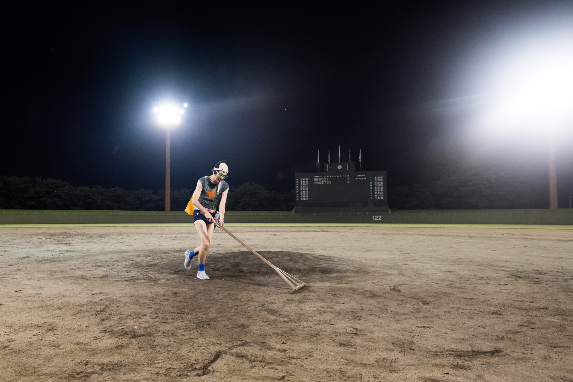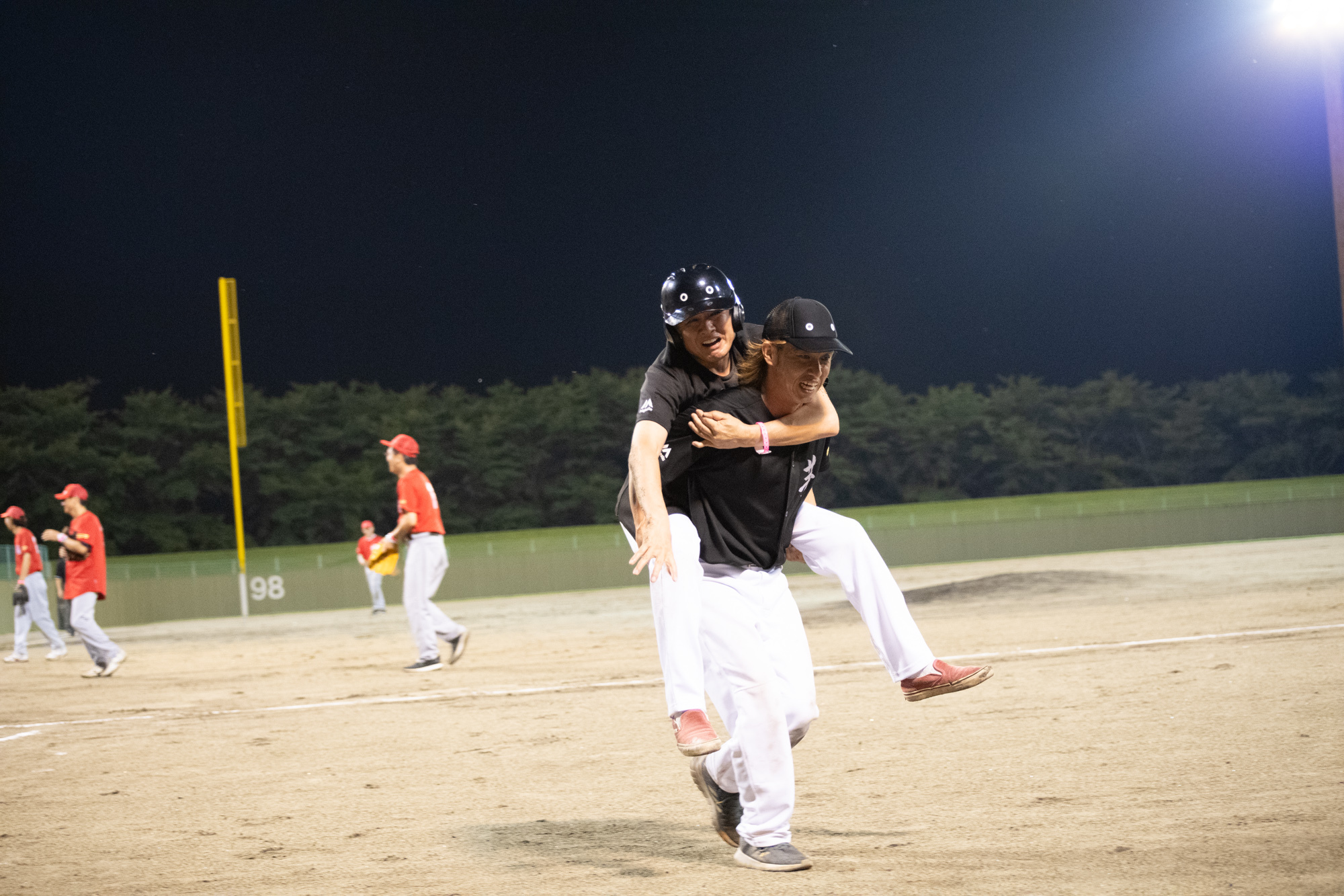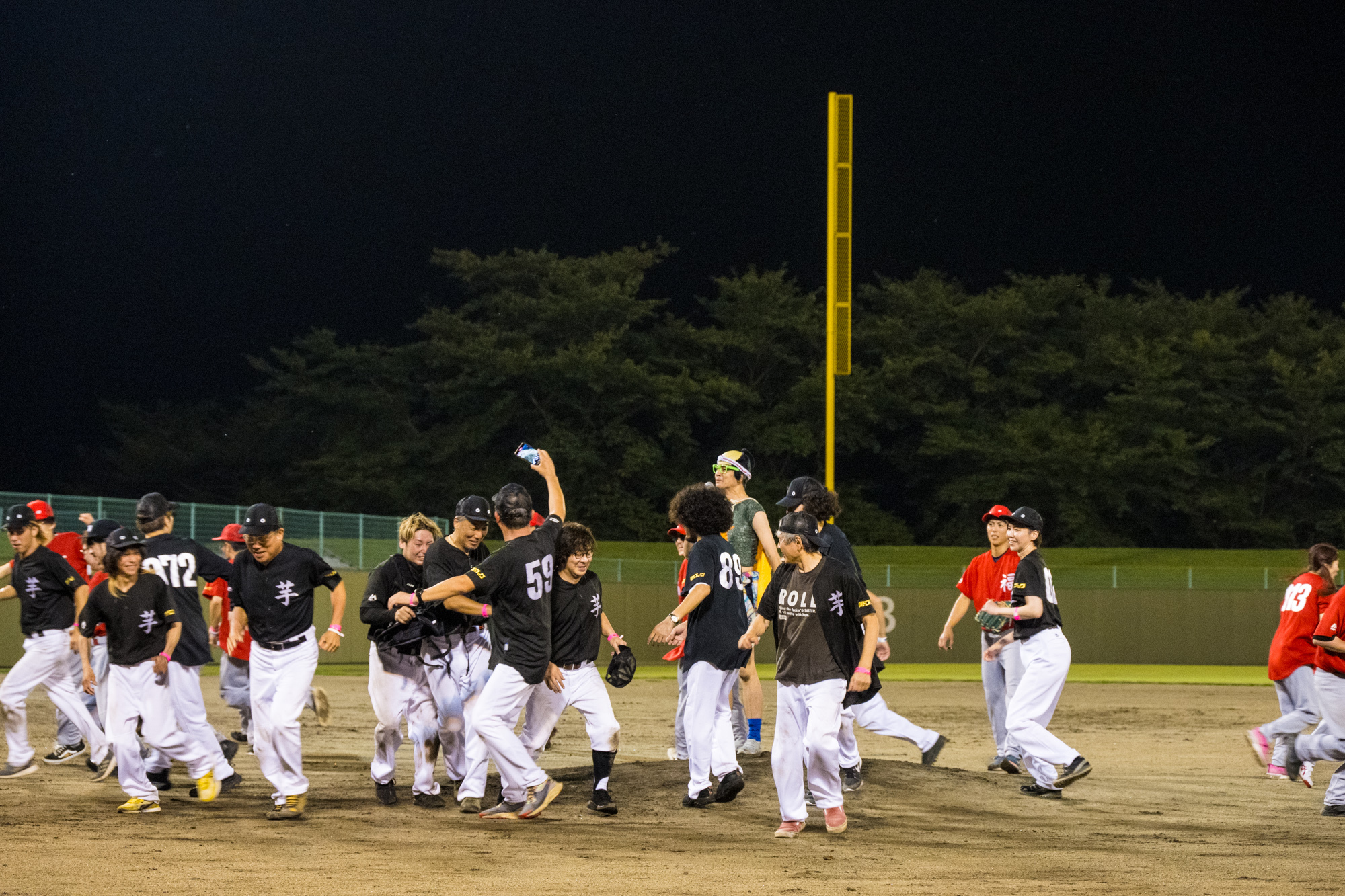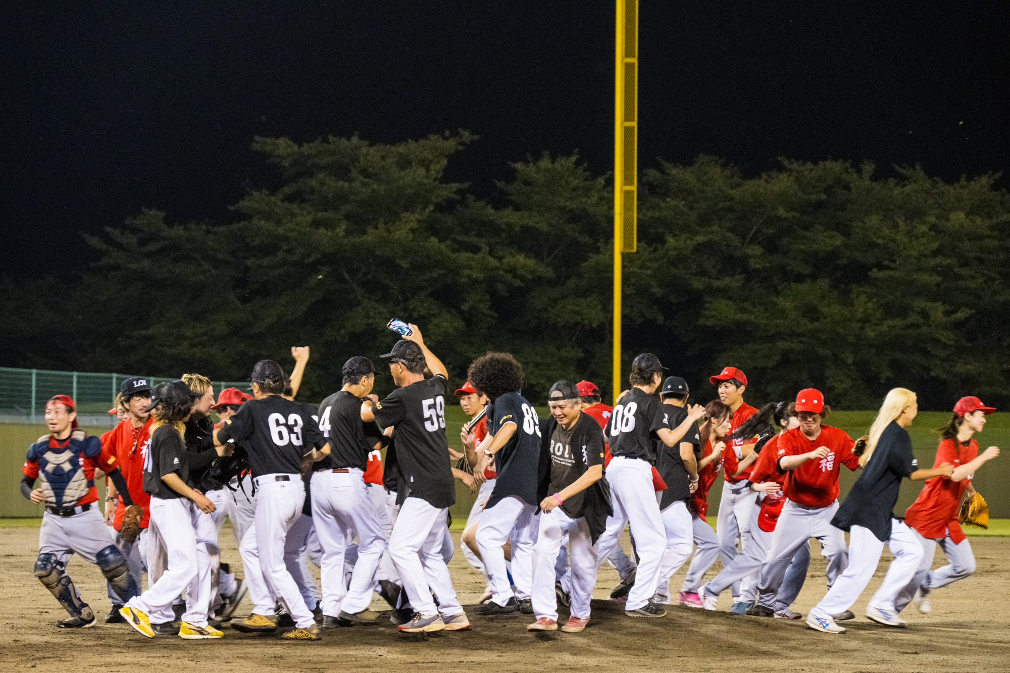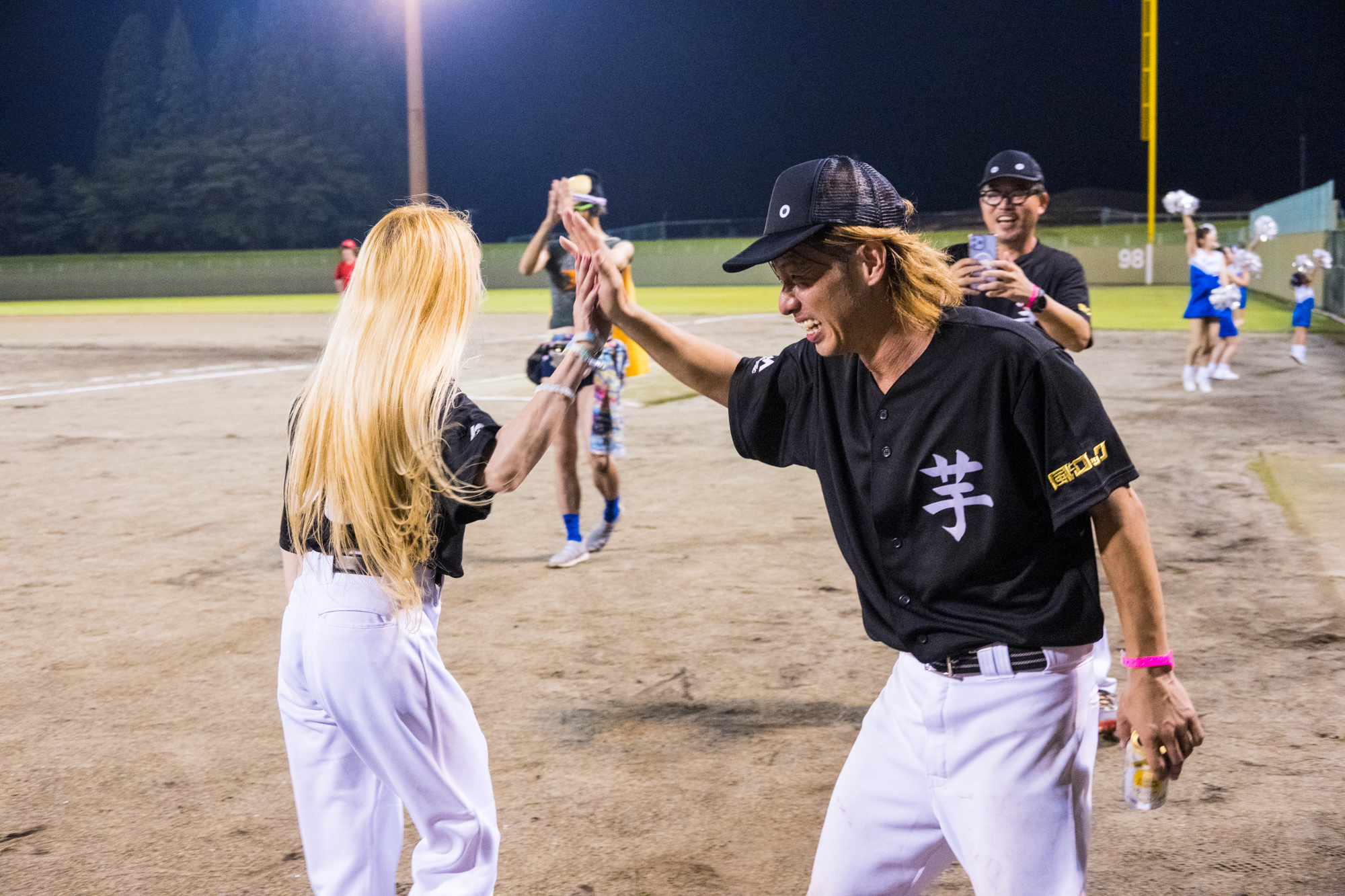 最後は両チーム大乱闘の末、ダチョウ倶楽部的に選手全員が何かを取り囲むかのように取っ組み合い、それが終わると怒髪天のドラム坂詰克彦が、とにかく明るい安村的に現れるという大茶番劇! なのに、そのアホらしさバカバカしさが最高としか言いようがない。そんな最狂の余韻に浸りながら球場裏を歩いていると箭内とすれ違った。手短に感想を興奮しながら伝えると、ひとこと返ってきた。