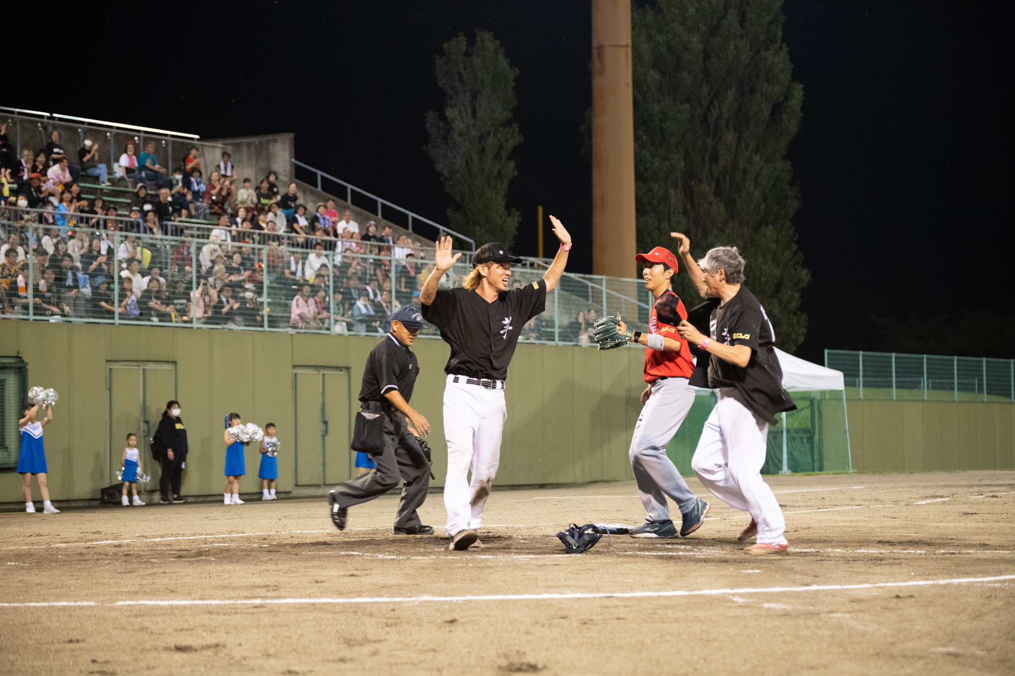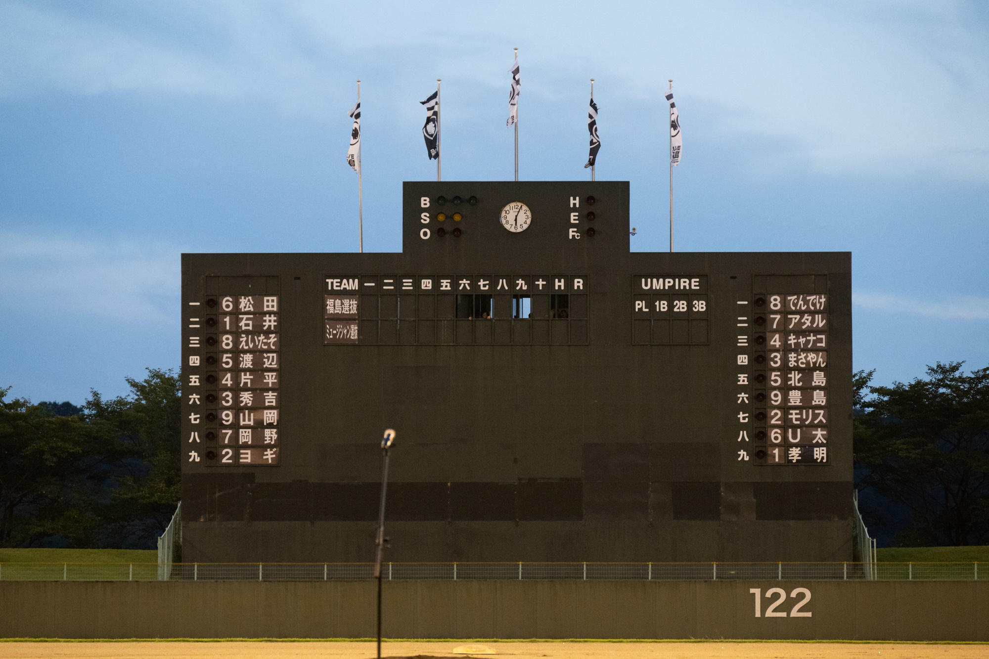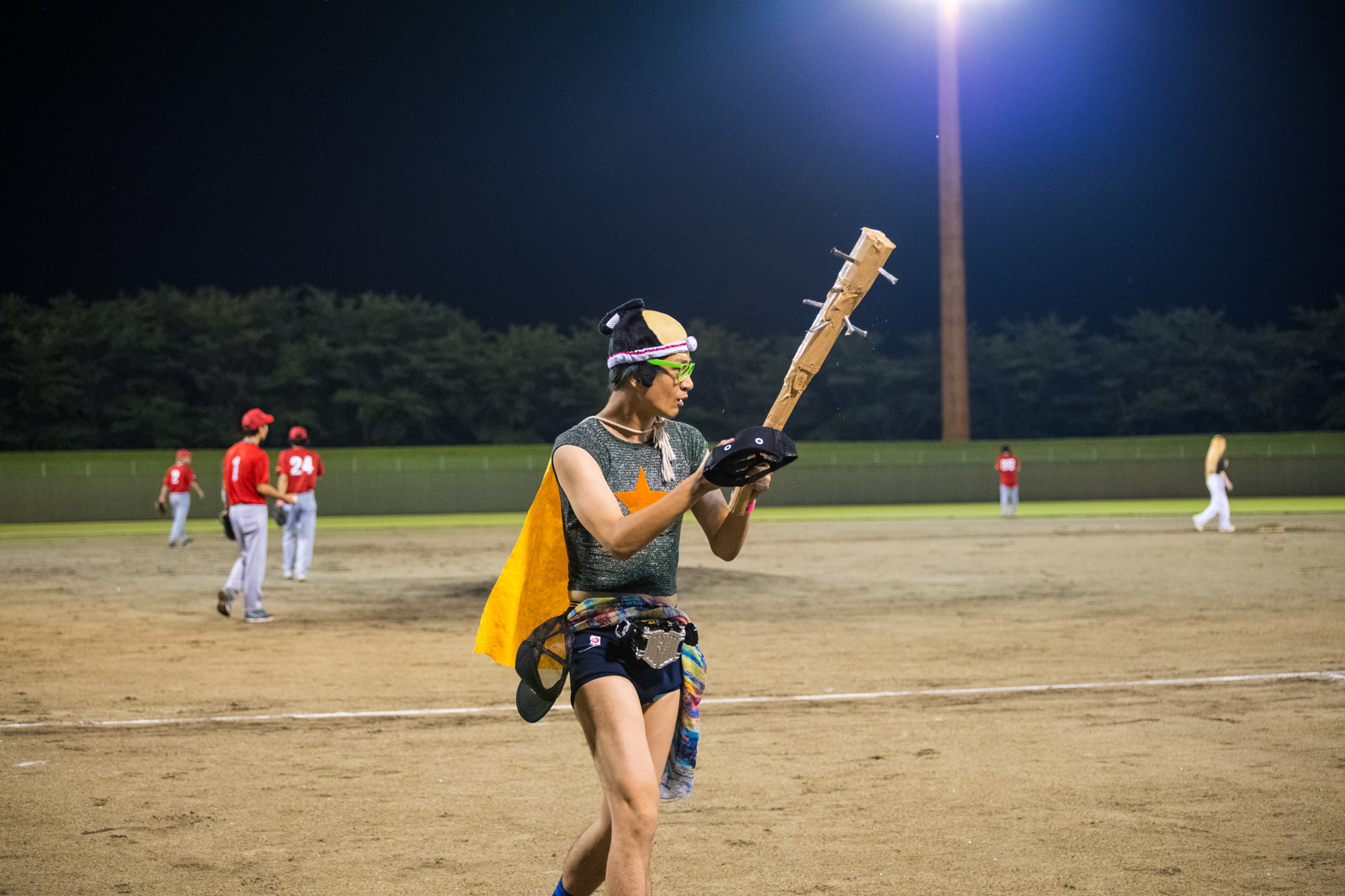 実況は公式MCの平井理央と福島中央テレビの徳光雅英アナウンサー、ウグイス嬢はFMふくしまDJ三吉梨香とかなり手が込んでいるし、解説は箭内と怒髪天の増子が担当。ブラスバンドは各ミュージシャンの楽曲を演奏したりするのだが、いつのまにやら指揮者を奈良が務めていたり、ズバ抜けて上手すぎるサックスが聴こえてきたと思いきや、武田真治が吹いていたりする。がっつりガチンコ真剣本気野球勝負というよりは、大相撲でいう初っ切りに近くて、真剣本気にふざけまくる。モリスいわく「ファン感謝祭」という言葉に納得がいく。