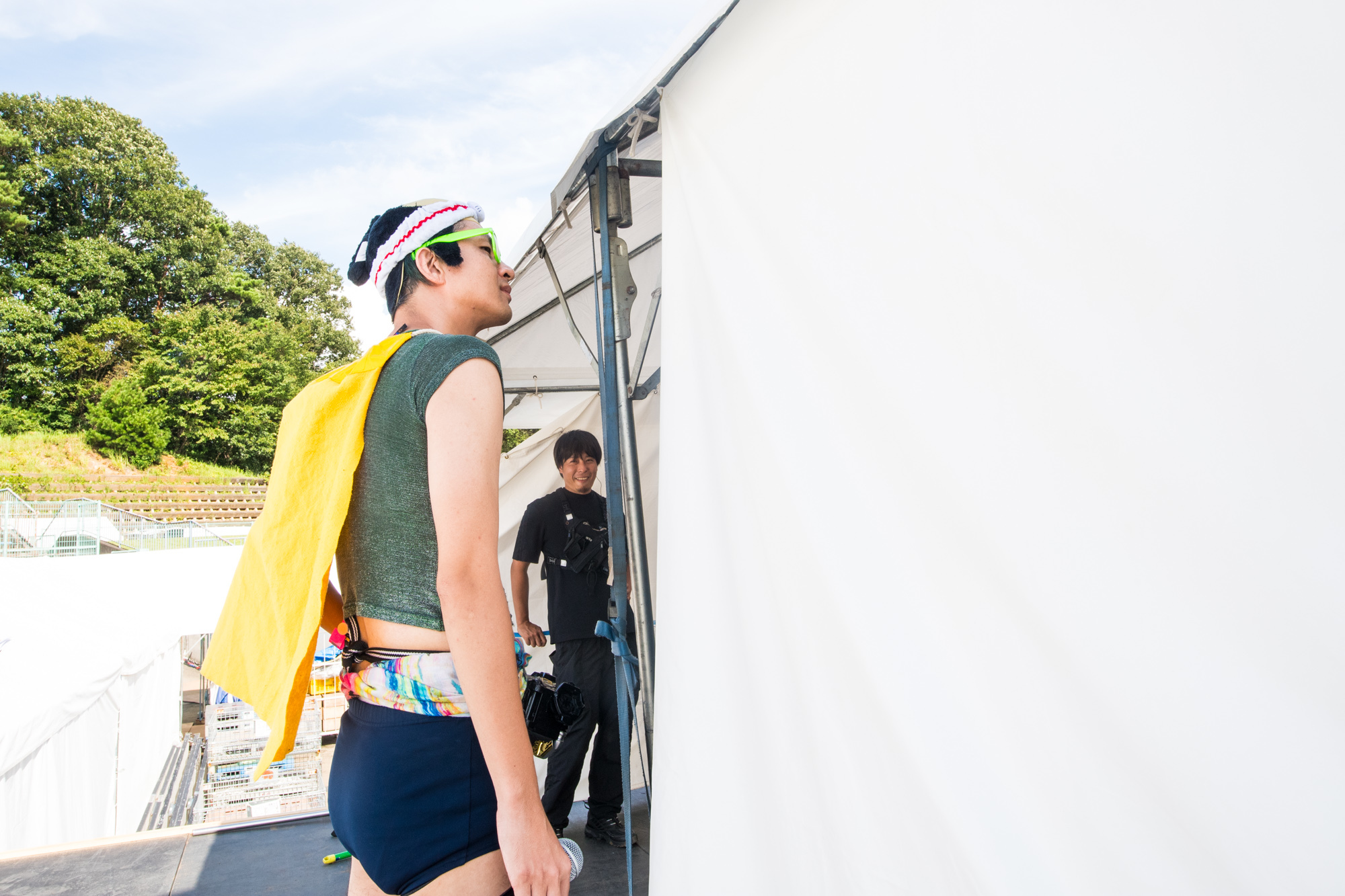タイムテーブルには載っていない昼2時15分からの四星球ラジオ公開生放送も、朝の段階ではU太とドラムのモリスのみであったが、いつのまにやら四星球4人全員になっており、主催にも名を連ねる福島民報の広告局の沢井氏と喋ることに。もう何でもありだ。その福島民報は福島県地元の新聞社である事くらいはわかるが、現場に来て実感したのは、ほぼほぼ現場を仕切っているのが福島民報のみなさんだという事。地元イベンターGIPのみなさんもおられてガッツリとサポートをされているのだが、福島民報のみなさんもイベンターの如くガムシャラに働いており、完全にフェス事業部のような役割をしている。ちゃんと役割を分担し過ぎるのではなく、その場にいるみなさんで協力しお手伝いしながら乗り越えていく。やっぱり完全に村祭りである。