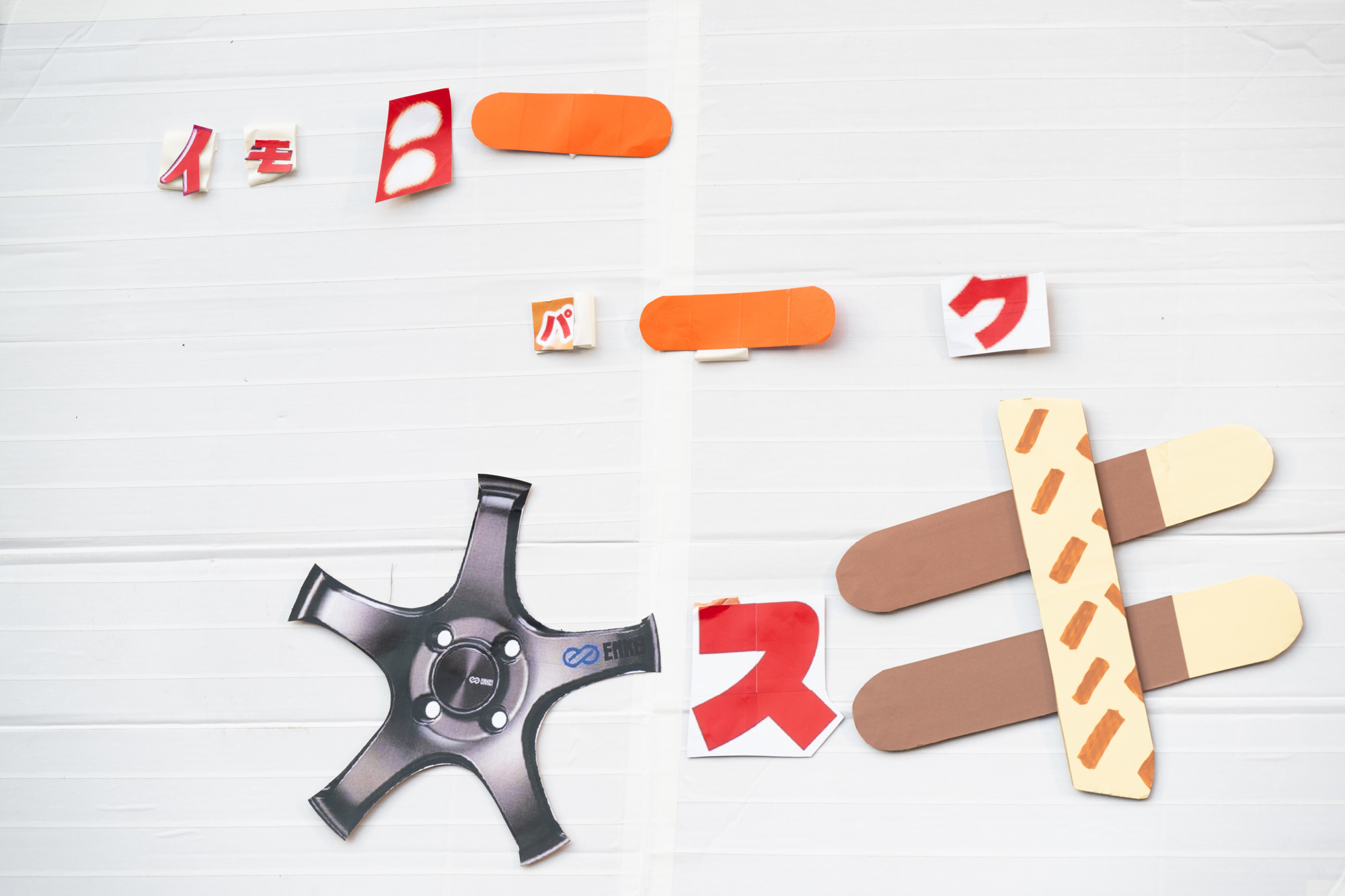 そんな間に知らない内にステージには観客の女性ひとりが上がっている。毎年2日間ひとりで来ている観客であり、せっかくならば地図を作って首からぶら下げて、観客みなさんにどこから来たかマークしてもらうようにと、箭内が指示したという。何なんだ、この距離感の近さは……。また、それに戸惑いながらも嫌がらない、その女性観客の根性も座っている。奇祭という言葉で奇妙なことは全て片付けられるが、それにしても奇祭過ぎる。でも、ほっこりしちゃうのが、この奇祭の良いところ。それと初日から気になっていたが、観客の多くが木製お玉を持ち歩いていた。過去に出場したことがある石川さゆりが、レキシにおける稲穂の様に、『風とロック芋煮会』も象徴的なグッズを作った方が良いという提案から作られたグッズだという。よ~く観ると単なるお玉ではなくて、芋煮の具材がお玉ですくわれたデザインになっている。東京藝大学生製作によるグッズだが、ほんまに芸が細かい……。最後にはエレクトリカルパレードの如くパレードカーが登場するが、それは福島西高校デザイン科学科生徒がリアカーを基に製作したもの。御当地の名産品をあしらったイラストがリアカーにたくさん貼り付けられている。開園式が終わってからは、関係者の子供たちが、そのリアカーに乗り、ブルースタジアムから「ろっくんろーる横丁」まで乗せられて走っていた。そんな町内会の子供のノリに付き合っちゃう感じも、とてものどかで良かった。こうして2日目が始まる。