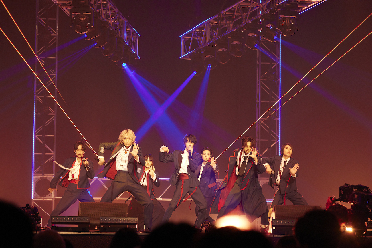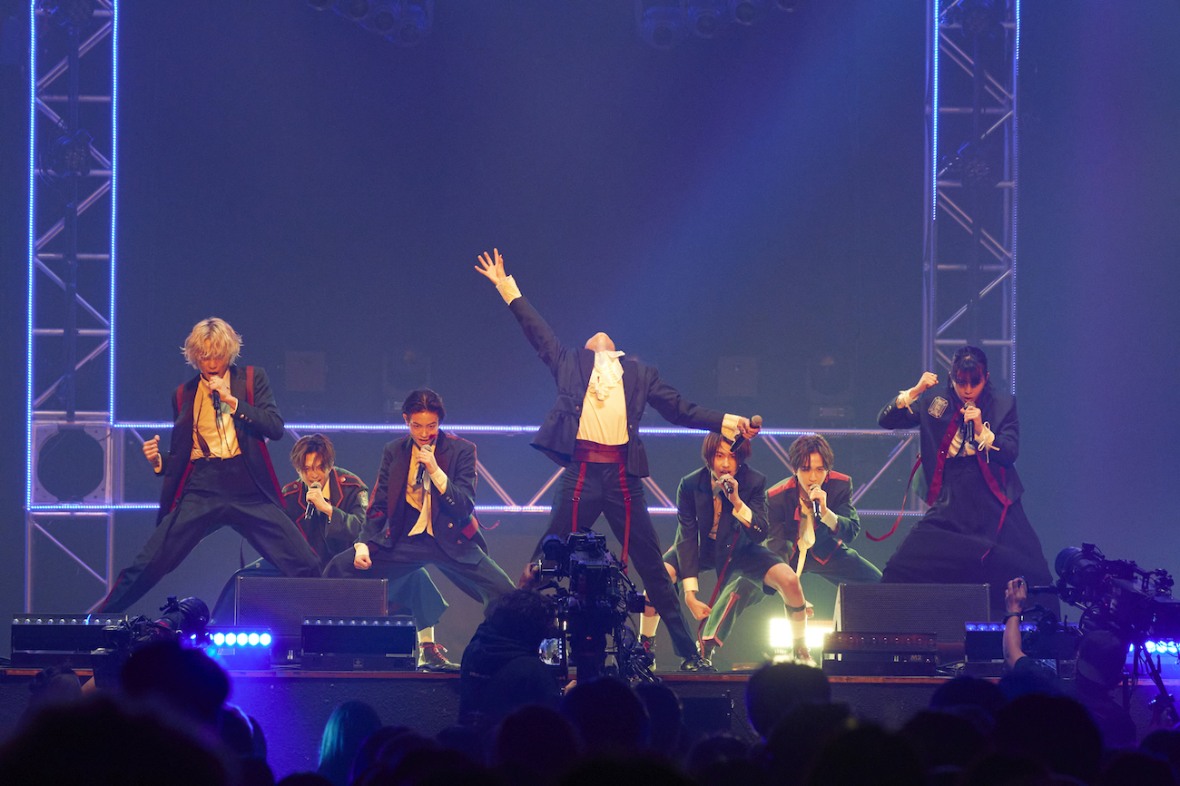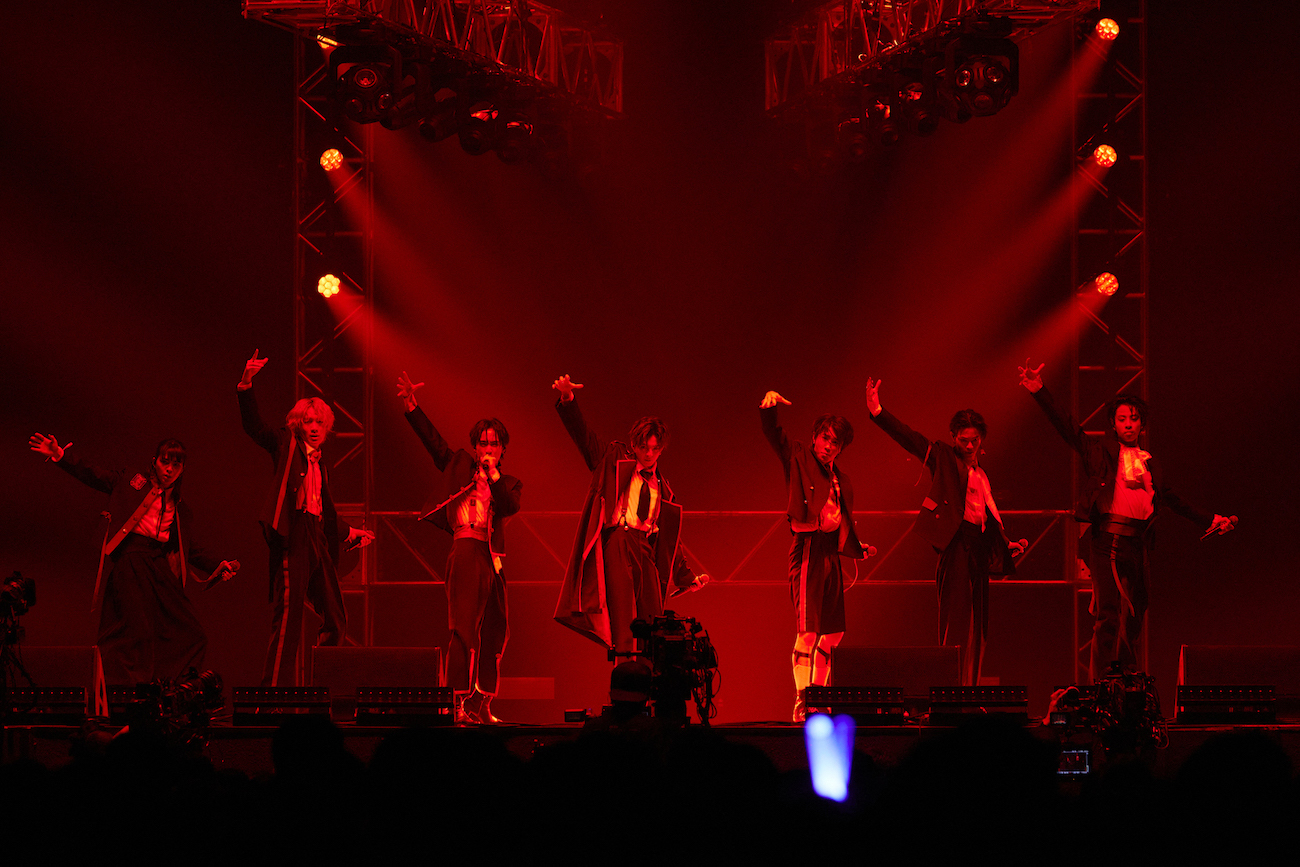 「JAPANESE PSYCO」では全員が真っ黒のサングラスをつけ、ルーディな雰囲気のパフォーマンスをみせる。「SENSUAL」ではITARUとKENTがリードボーカルを担う。流麗さの中にも力強さを感じさせるふたりのボーカルに観客も引き込まれ、改めて歌唱力の凄さ見せつけた。