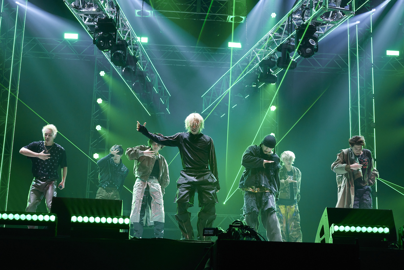 2021年11月3日にデビューシングルをリリースし、その3日後、ここ横浜アリーナで『バズリズム LIVE』に初出演した頃をLEOは振り返り『2年経ってたくさんの人に支えられ、たくさんのBESTY(BE:FIRSTファンの呼称)に支えられ、あの日の楽屋でSKY-HIさんに2年後にドーム行くよ!って言われ、遂に来年の3月に東京ドームでやります!』と応援してくれたファンに感謝を伝え、『次のライブまで Bye-Good-Bye!』と告げ7曲目の「Bye-Good-Bye」に入る。BE:FIRSTのライブの曲間はSEが流れている。ロック・バンドのリズム隊が後ろで楽器を鳴らしているように。いつでも次の曲に備えられるべく、ステージはノンストップで繋がってる状態になる。自然、各席もエキサイト・モードのまま。そんなところへ『タオル持ってる人いますか!遊ぼうぜ最後は!横アリ!!!!!』と煽り、続く「GreatMistakes」では会場の至るところで色とりどりのタオルが振り回される。メンバーも花道ステージ左右に拡がってオーディエンスを煽りに煽る。ステージの興奮そのままでラストナンバー「Scream」を畳み込み、35分をフル・スロットルで駆け抜けた。