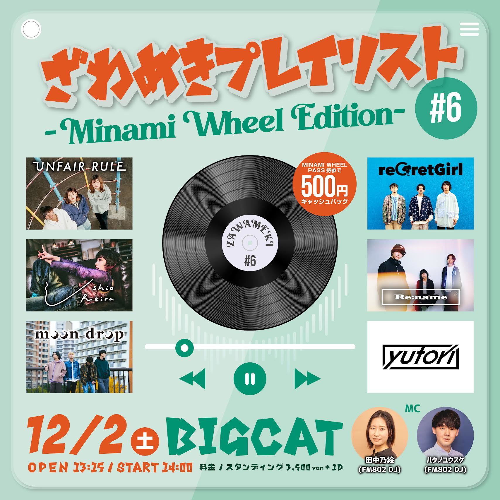 『ざわめきプレイリスト』は、「ざわめくアーティストを1つのプレイリストに」をコンセプトに注目の気鋭アーティストが出演するライブイベントで、『#0』を含め6回目の開催となる。毎年秋に大阪・アメリカ村一体で行われるサーキットイベント『MINAMI WHEEL』の「-MINAMI WHEEL EDITION-」として開催され、今回はUNFAIR RULE、汐れいら、moon drop、reGretGirl、Re:name、yutoriの6組が出演。当日はFM802 DJの田中乃絵&ハタノユウスケがMCを務める。