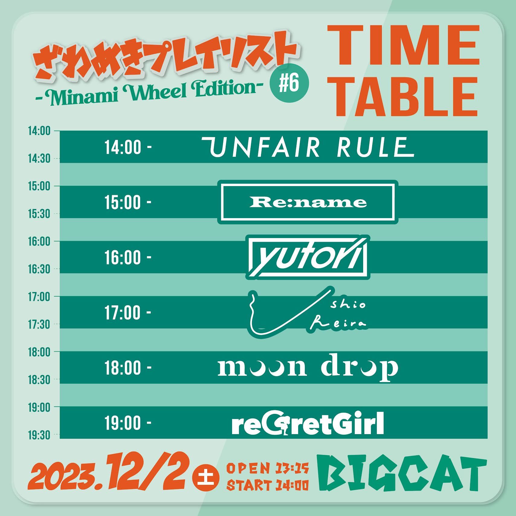 2023年12月2日(土)に、大阪・BIGCATにて開催される『ざわめきプレイリスト#6』のタイムテーブルが発表された。