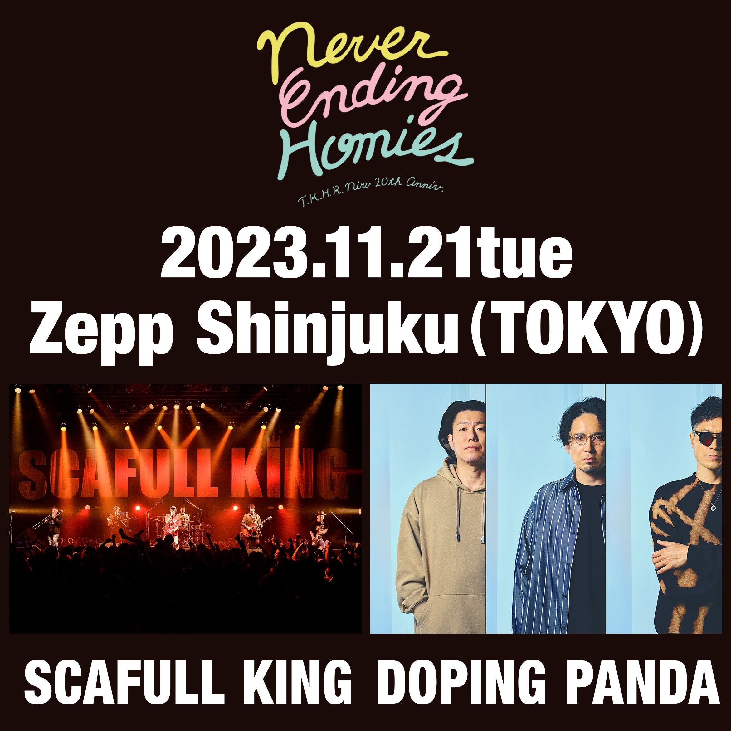 SCAFULL KINGとDOPING PANDAの22年振りの2マンライブとなる同イベント。今回発表となったDJは、当日のイベントTEEのデザインを担当した松田”CHABE”岳二、今回のイベントロゴを手掛けたTaichi Furukawa、さらにTKHRNIW本人も会場を盛り上げる。なお、チケットはイープラス他にて販売中。