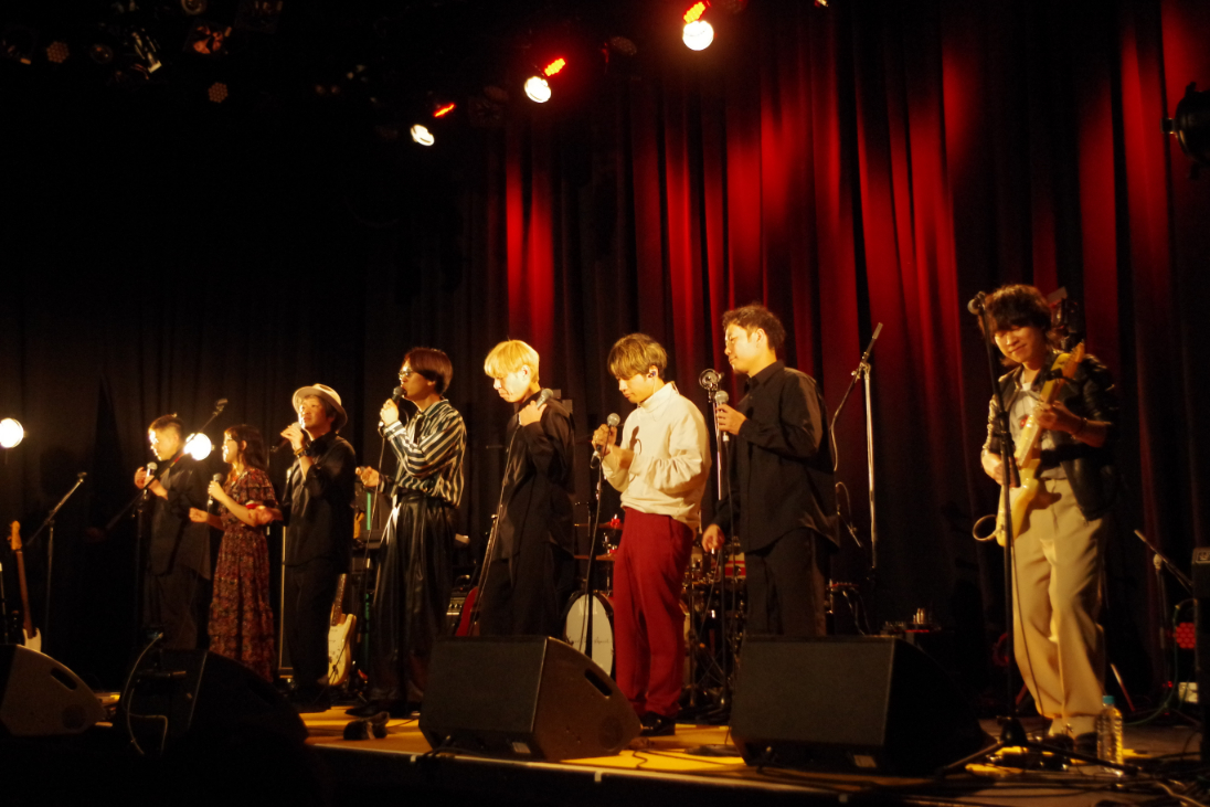 さらに、この日はGOOD BYE APRILとキンモクセイによるコラボユニット「こんなもんで終わりだと思ったら、大まちGuys」が結成。幕間にステージに登場し、アカペラで山下達郎の「LAST STEP」のカバーを披露した。ツアータイトルを体現するかのような2組のハーモニーで会場を満たし、観客もこの特別コラボに酔いしれているかのようだった。