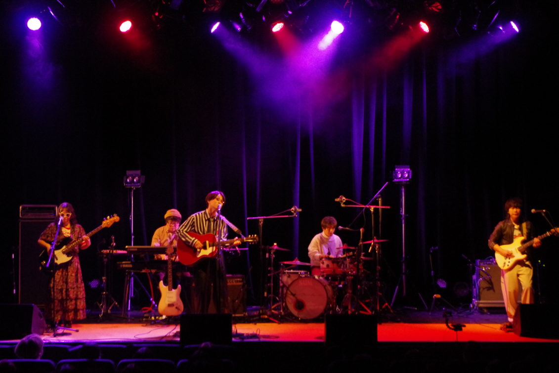 延本文音(Ba)のスラップがグルーヴをどんどんと高めていく「サイレンスで踊りたい」からは、再びアグレッシブなパフォーマンスが展開。「リップのせいにして」では、キンモクセイから伊藤俊吾を呼び込み、三度のコラボ。遊び心溢れるリズムにせわしない吉田卓史(Gt)のギターが絡み合い、自由にメロディーを乗せていくコラボならではの光景が繰り広げられる。ラストナンバーは、ライブの定番曲「missing summer」だ。そして、アンコールではなんと四度目のコラボが実現し、GOOD BYE APRILと伊藤俊吾でシュガー・ベイブ「DOWN TOWN」を披露。大団円でライブは幕を下ろした。渋谷の地でGOOD BYE APRILとキンモクセイの見事なハーモニーが完成した一夜となった。この日のセットリストは、プレイリストとして各配信サイトにて公開中だ。