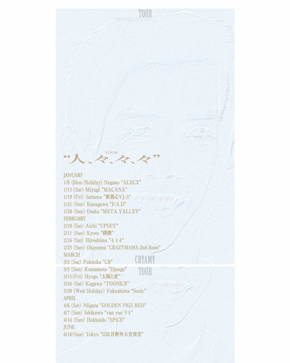 CRYAMYが2024年1月8日より、全国ツアー『人、々、々、々』を開催する。また、同ツアーチケットのイープラス最速先行(先着)が、本日・11月22日(水)21:00から開始となる。