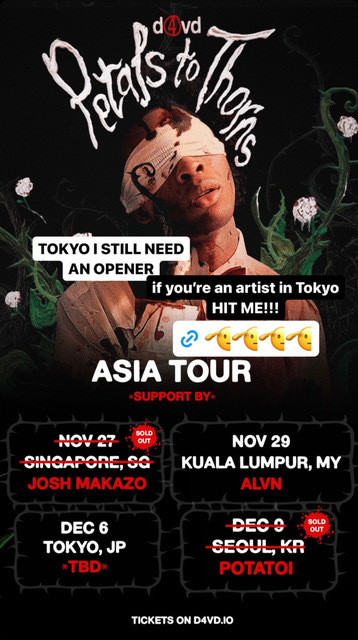 12月6日に東京 The Garden Hallにて、日本での初の単独公演を予定しているd4vd(デイヴィッド)。その一夜限りの来日公演のオープニングアクトを一般公募することが発表された。