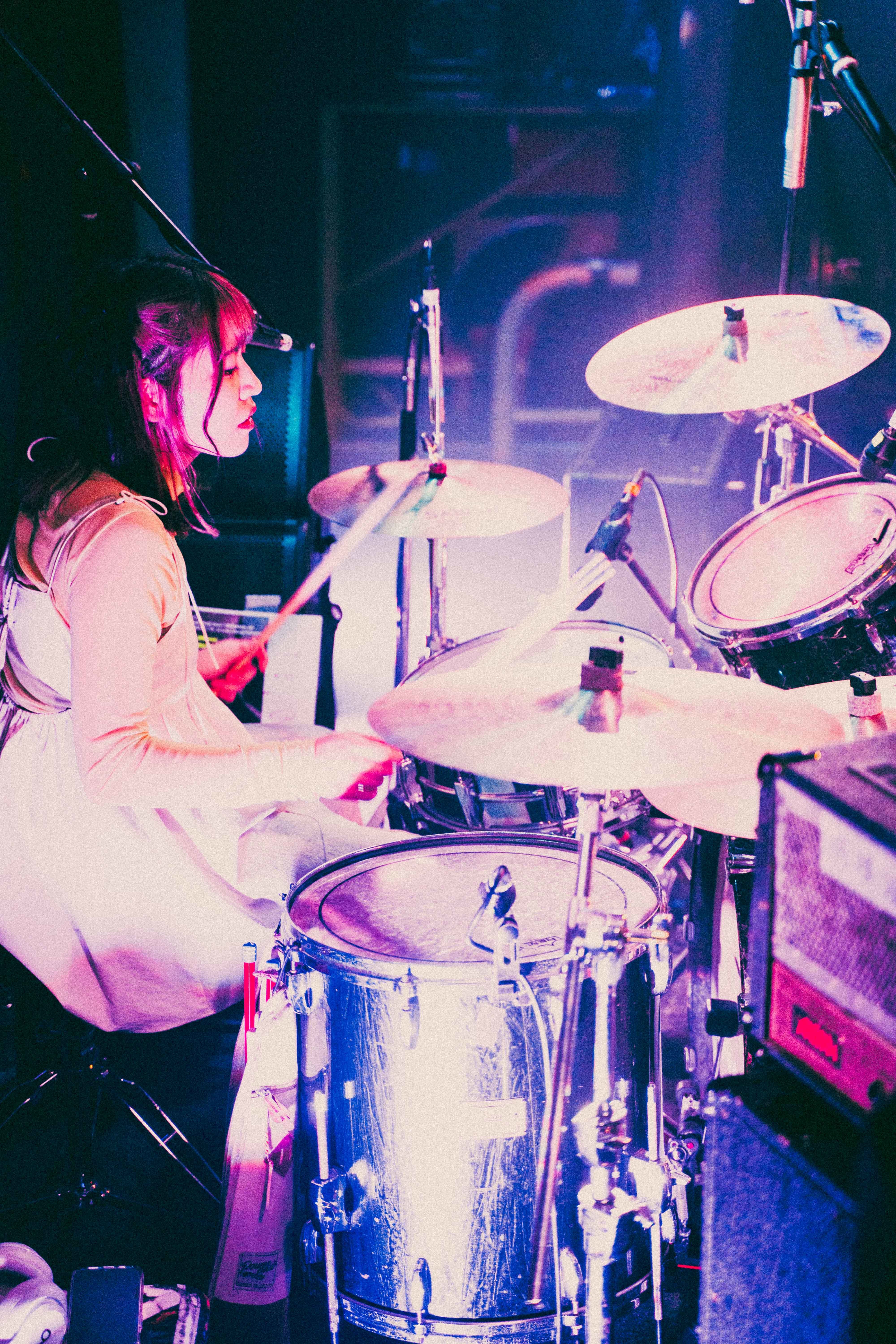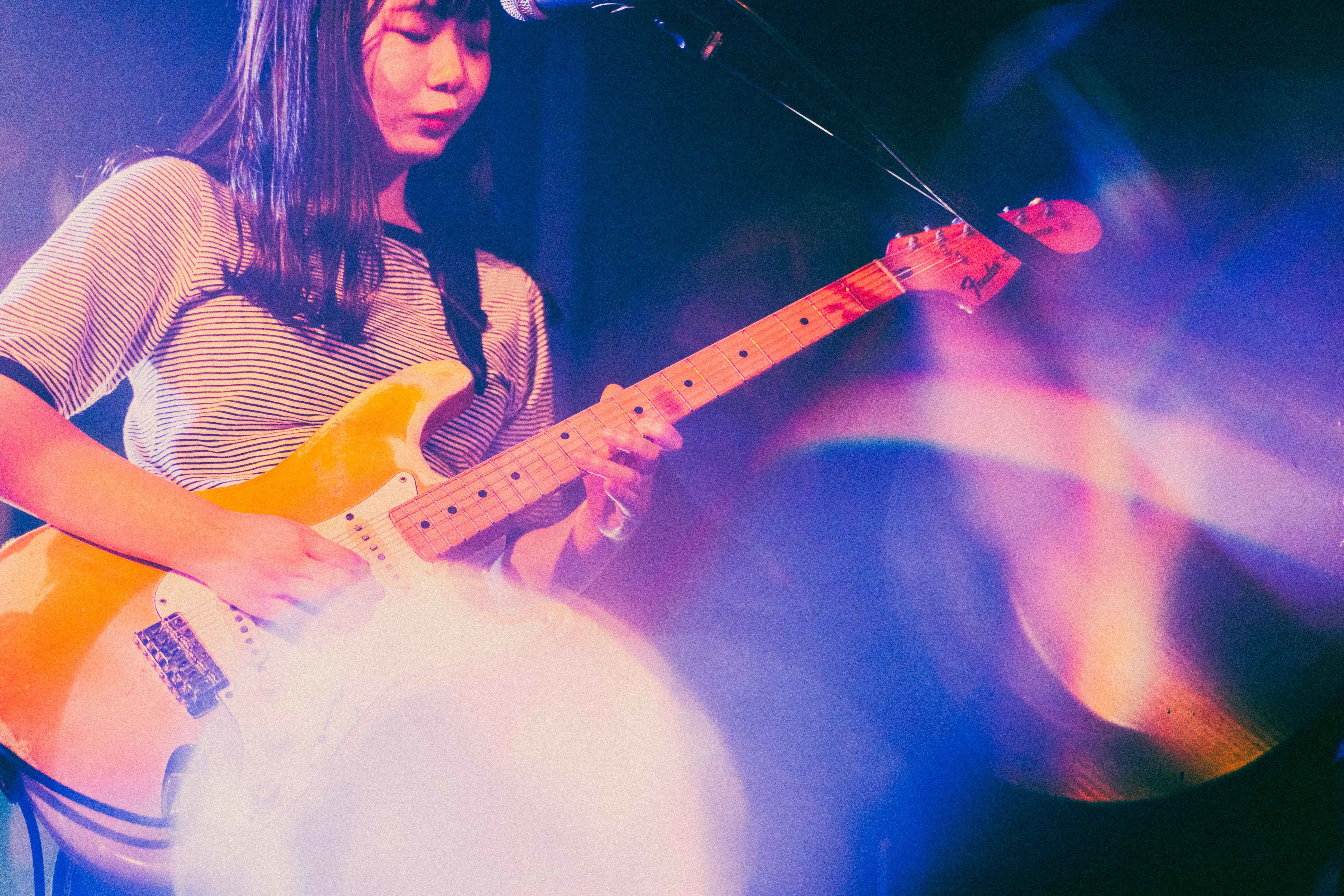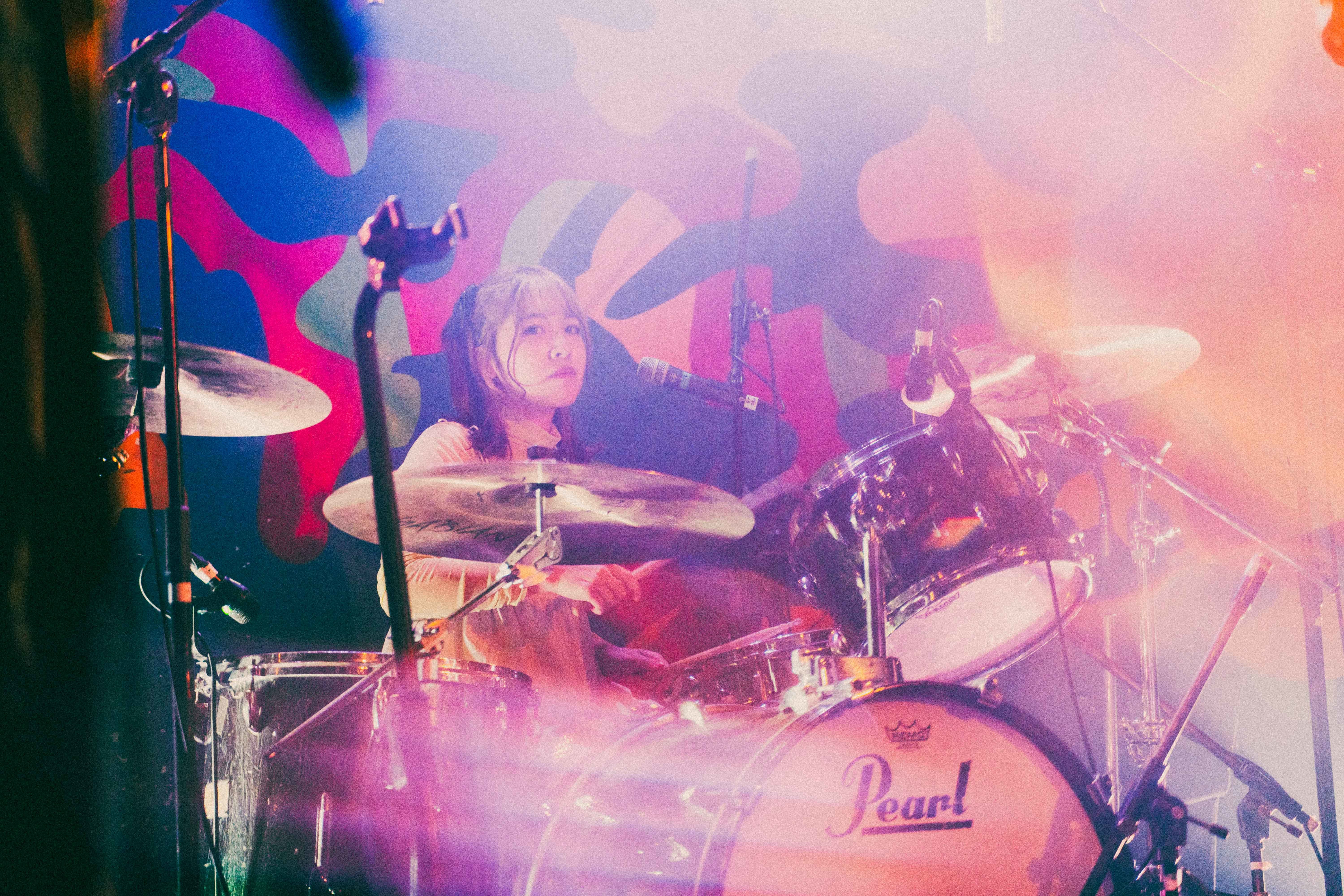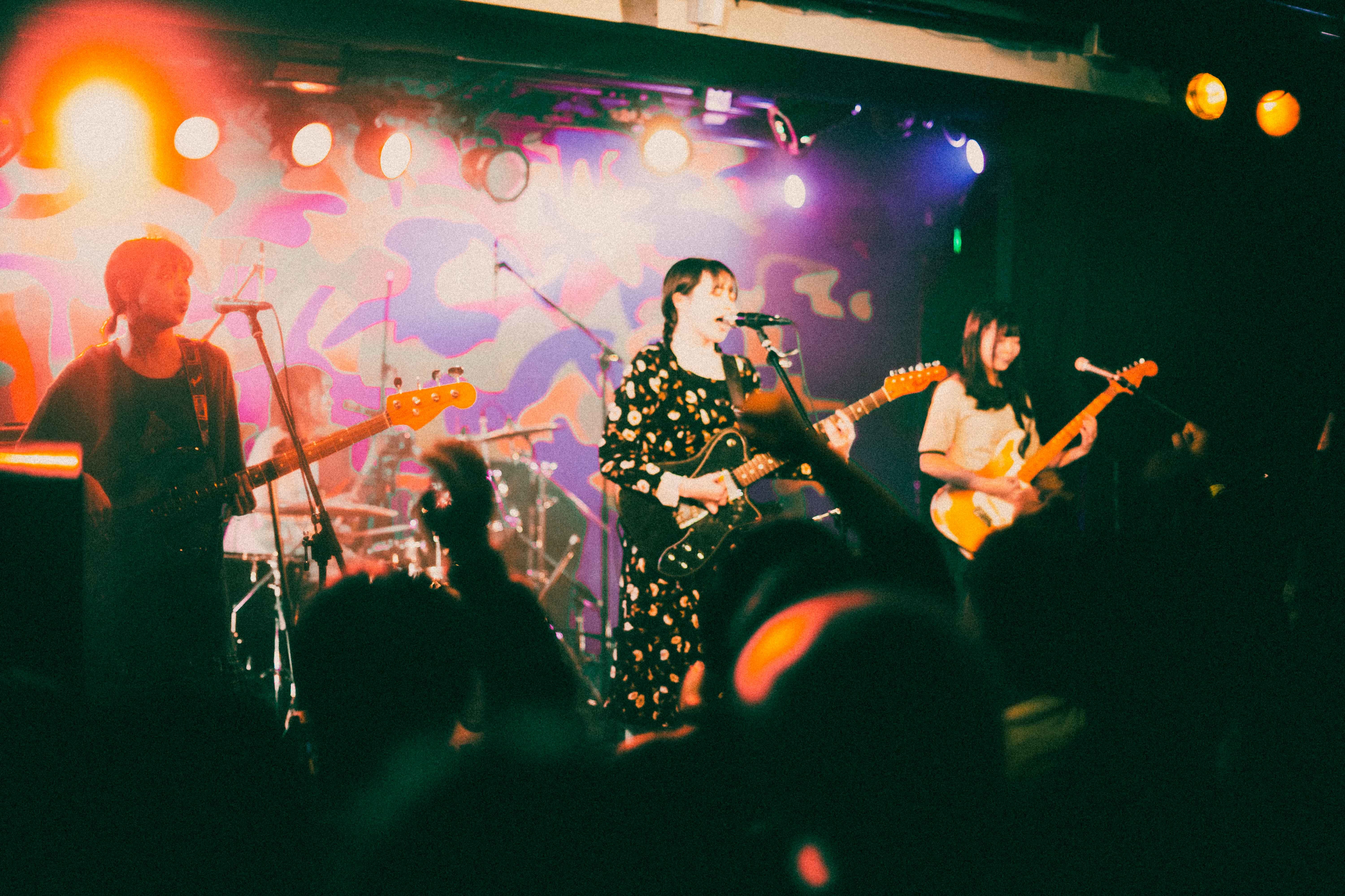 中盤を越えたあたりでの「なつ」は、今までと毛色が違うリズムで刺激あるスパイス的な役割を果たす。音源で聴いた時に感じた格好良さとはまた違うライブならではの生々しさがあり、90年代UKロック的なダイナミズムを感じた。しかし、ここでハプニングが起きる。ほんの瞬刻だが、あいが歌詞を飛ばす。が、何事も無かったかのようにラララというハミングで乗り切る。当の本人は焦ったに違いないが、この動じないショーマストゴーオン精神は、彼女の成長とタフさを感じることができた。