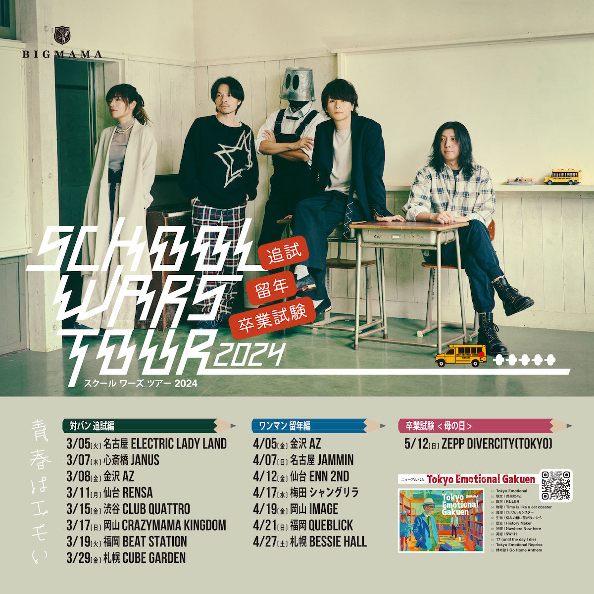 BIGMAMAが青春・学校をテーマに制作したニューアルバム『Tokyo Emotional Gakuen』のリリースツアー『SCHOOL WARS TOUR』が、本日・Zepp DiverCity(TOKYO)にてツアーファイナルを迎えた。