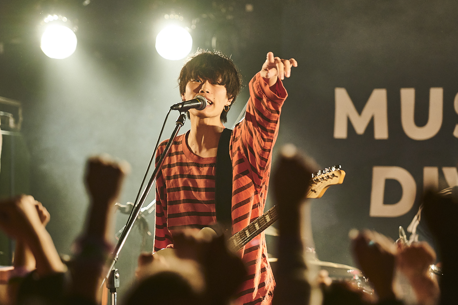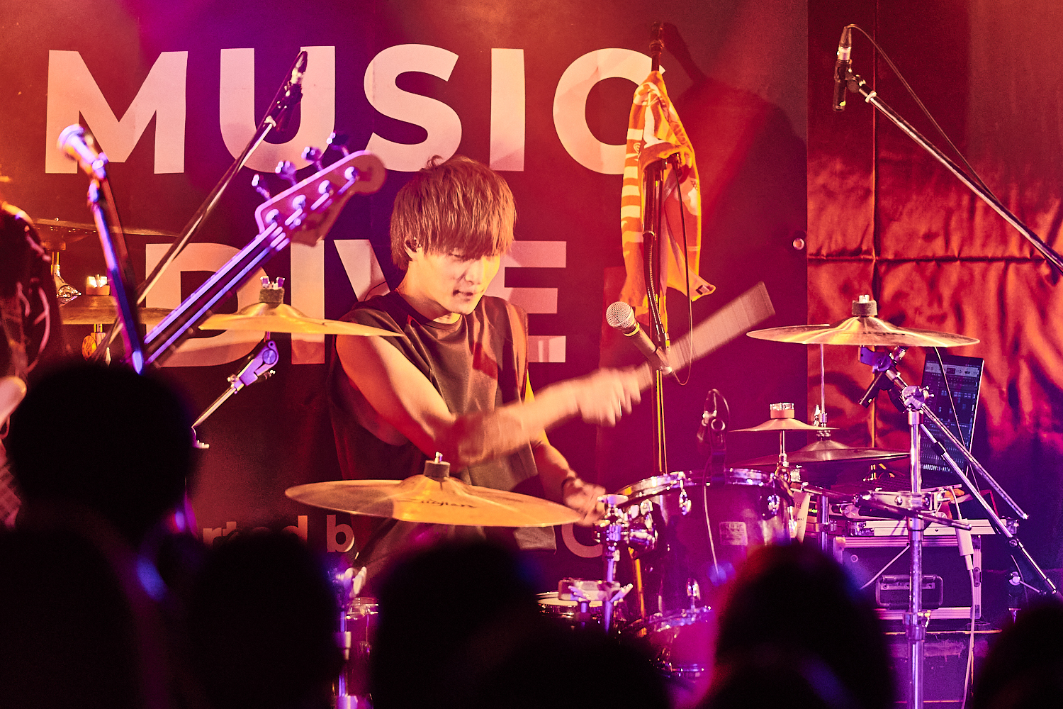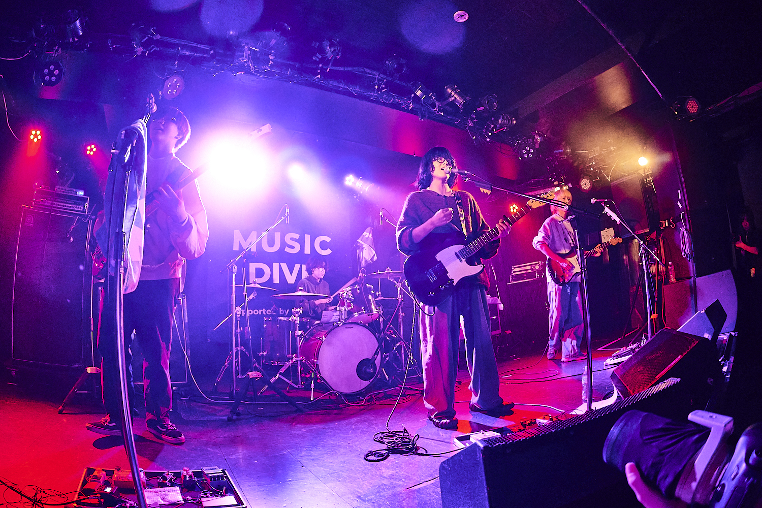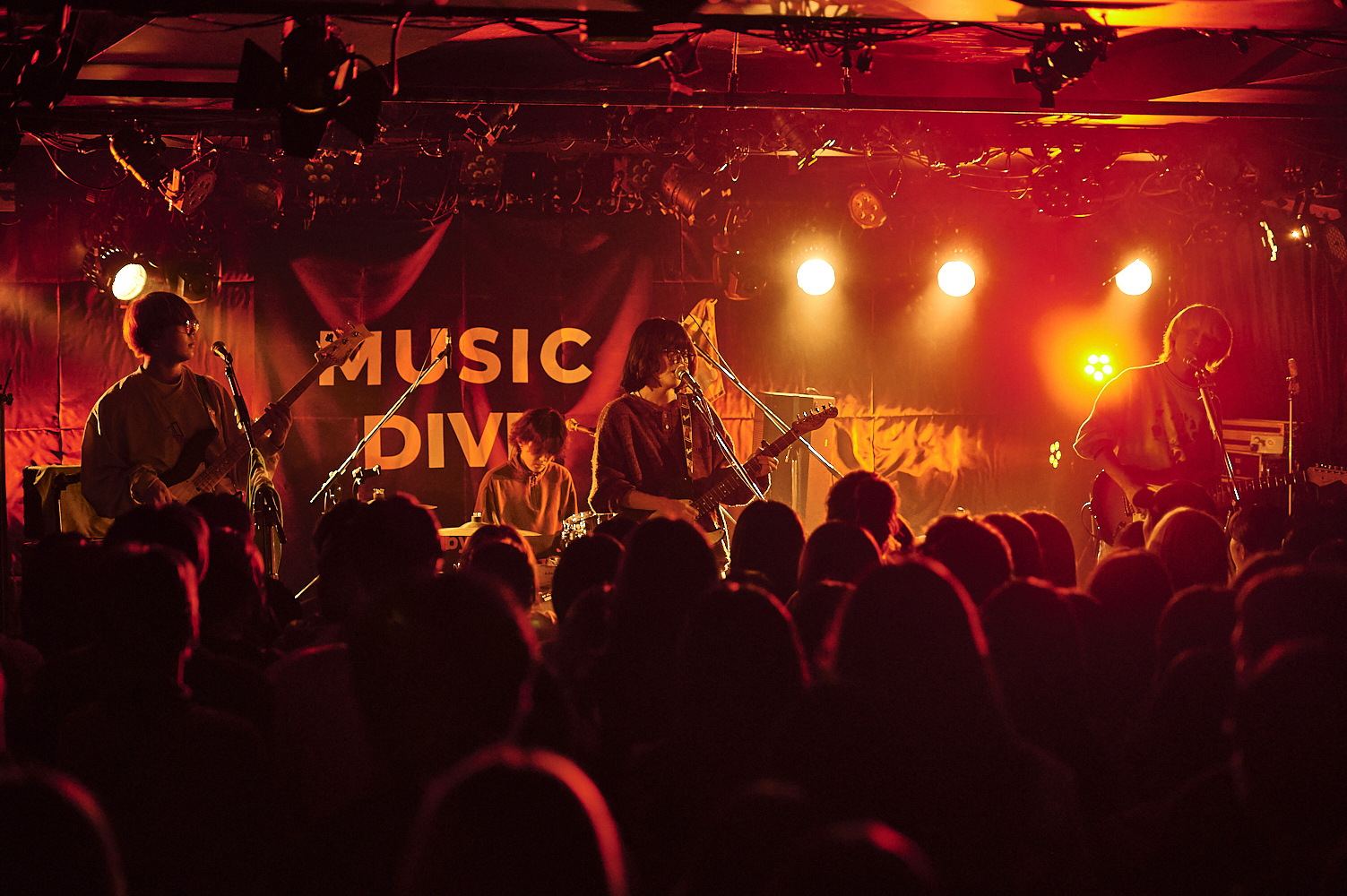 MCで「今夜、新曲をリリースします!」とホリウチが告げ、「人を愛することに臆病になった夜に、俺と同じようなヤツがいたら寄り添ってあげたいなと思って書きました」と始まったのは、新曲「さよなら恋人、おかえり恋心」。エモーショナルな歌声と悲痛なファルセットが胸を締めつけるバラードソングで観客を魅了すると、ラストは代表曲と言える「カシスオレンジ」で、彼らの音楽の奥深くまで観客をダイヴさせると、「最後までありがとうございました! 『MUSIC DIVE』、あなたと音楽ができてよかったです。またライブハウスで会いましょう」と言って3人が深く頭を下げて、ライブは終演。“バンドとリスナー、バンドとバンド、そしてリスナーとリスナーを繋ぎ、「MUSIC」に「DIVE」する”という『MUSIC DIVE』のコンセプトに相応しいラストとなった。