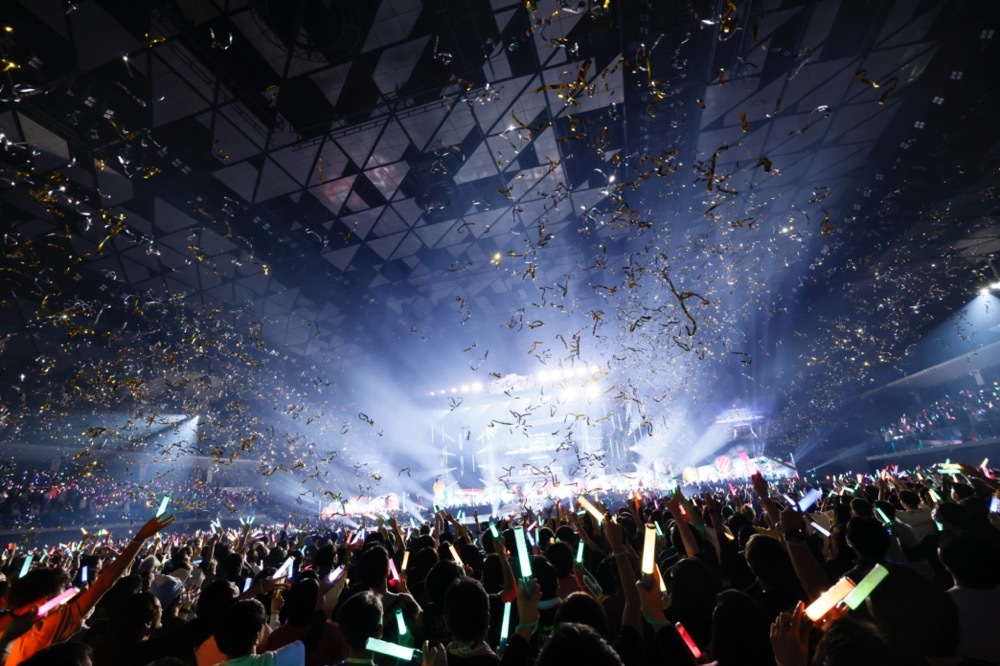アンコール1曲目は「On your mark」。踊りもだけどみんな表情が良すぎる。これはライブでしか得られない要素だと思う。続けて各ユニットごとに「ノンフィクションヒーローショー」「KNOT」「千変万華」が披露された。「ライブはまだまだこれからですよ〜」と、再び6人揃って「Trick & Cute」。アンコールに突入してもその勢いは止まることを知らない。アンコールは6曲目に突入し「Legato」では最後は6人全員でトロッコに乗り、最後は3台でアリーナ中央に。「本日本当に最後の曲になります。最後まで全力で楽しみましょう!」と意気込み「永遠のEuphoria」へ。カメラの画角で遊んだり、和気藹々とした雰囲気でラストを迎える。