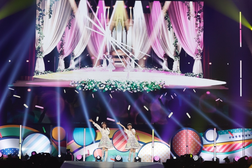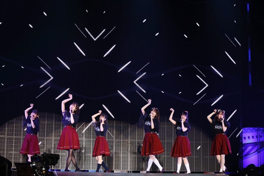 「改めて東京公演DAY2いかがでしたかー?」ここまでアンコール7曲を含む、全29曲を披露。圧巻のボリュームだ。最後に各自、公演に向けての心境など、思い思いの言葉を語るが、楡井は冒頭でもあったYoutube企画の話を掘り返し「撮影で飛田給に来た時、このアリーナを見て、先輩たちがここでライブしてたのも見てたし、「こんなに大きな会場で私たちもいつかライブやりたいな」と思ったんですけど、まさか出来るとは。そしていつも応援してくれてるみんなでこの会場がいっぱいに埋まったこの景色を見る事が出来て嬉しい。」涙を浮かべながらその思いを語ってくれた。