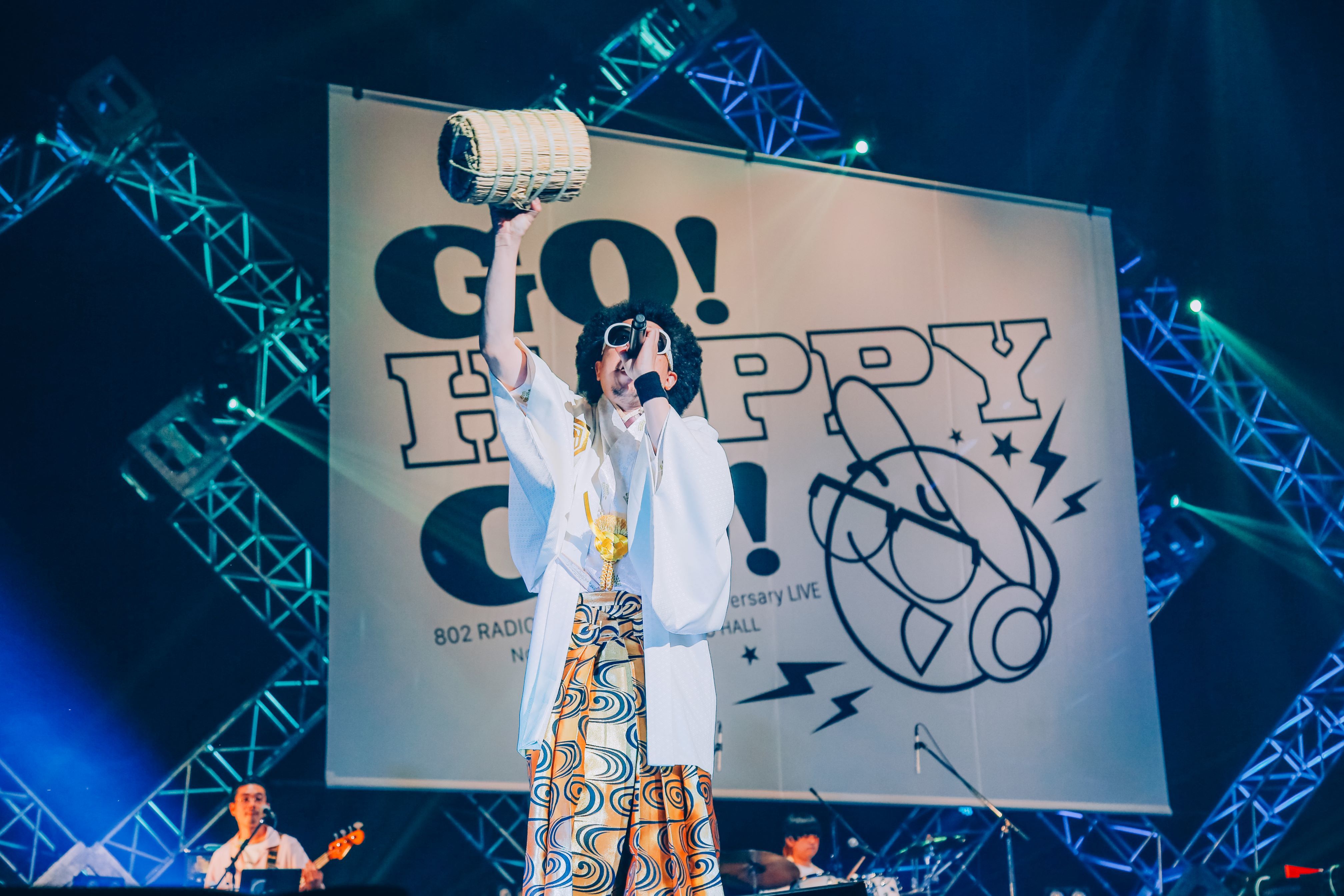 本イベントはFM802でDJを務める中島ヒロトが担当する、平日午後の看板番組『THE NAKAJIMA HIROTO SHOW 802 RADIO MASTERS』の15周年、そして中島ヒロトの55歳(GO!GO!)を記念して行われるダブルアニバーサリー。出演者も番組や中島に所縁のある豪華アーティストが多数顔をそろえた。ラインナップは阿部真央、梅田サイファー、岡崎体育、木村カエラ、キュウソネコカミ、KREVA、スガ シカオ、スキマスイッチ、秦 基博、flumpool(山村隆太・阪井一生)、矢井田 瞳、レキシ。オープニングにはダンスグループのアバンギャルディが。さらに本イベントのスペシャルハウスバンド【GO!GO!HAPPYバンド】として、ハマ・オカモト(OKAMOTO’S)、大樋祐大(SANABAGUN.)、Rei、岡本啓佑(黒猫チェルシー)が出演。会場には約8000人のリスナーが集まり、祝宴をともに楽しんだ。