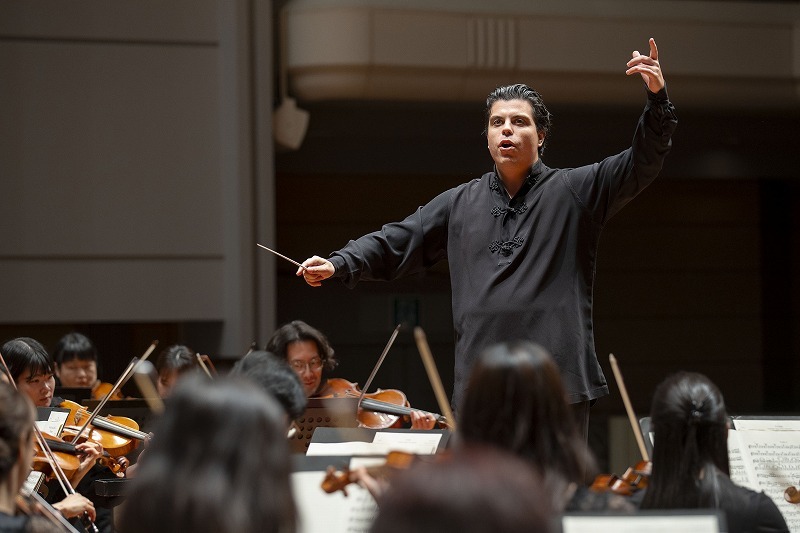 後半は指揮者 バッティストーニ がこのコンサートのために作曲した「コリバス―管弦楽のための幻想的舞踏曲」の世界初演で幕開け。初めて聴く曲なのに口ずさんでしまいたいような魅力的なフレーズの数々が、思わず踊りだしたくなるリズムとともに圧倒的なグルーヴで繰り広げられるスリリングな作品で観客を魅了した。