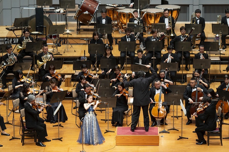 グリンカの歌劇『ルスランとリュドミラ』序曲で華やかにスタートした後に登場した 村田夏帆が披露したのはシベリウス「ヴァイオリン協奏曲 ニ短調 作品47」。16歳の彼女のいったいどこからこんなエネルギーが、と驚かざるを得ないような推進力で見事な演奏を聴かせ、演奏後のインタビューでは現役の高校生らしい一面も覗かせた。