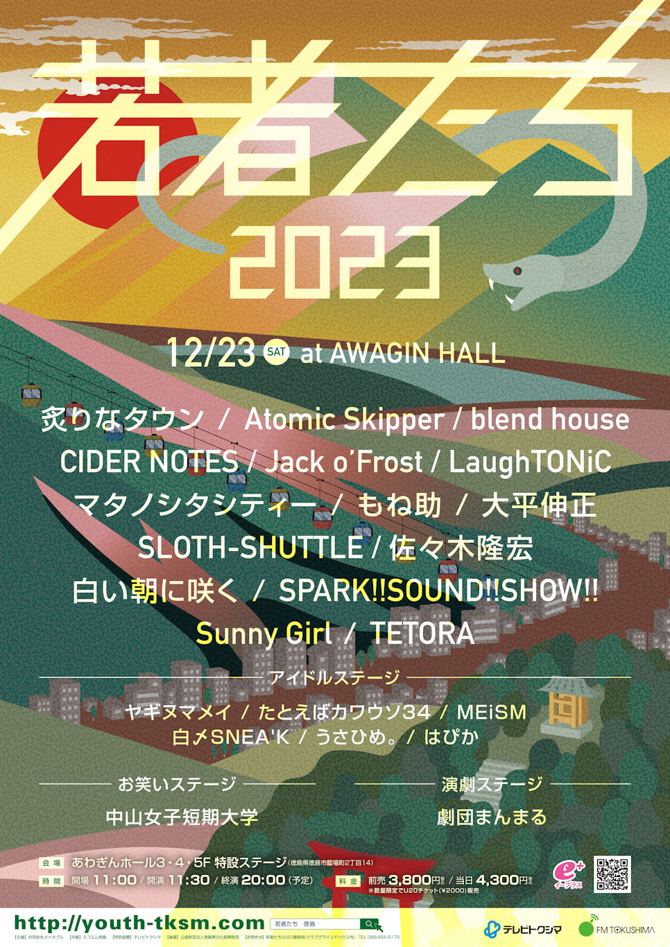2023年12月23日(土)に、徳島・あわぎんホール 特設ステージにて開催されるライブイベント『若者たち2023』に、SPARK!!SOUND!!SHOW!!、Sunny Girlの出演が決定し、全アーティストが発表された。