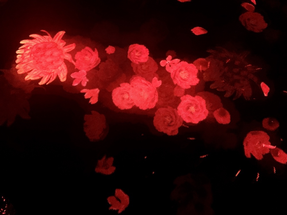 映像はあらかじめ出来上がったものではなく、プログラムによってリアルタイムに生成されるものだという。人々が近くで動きまわると花々は散っていき、じっとしていると花々は普段より多く生まれる。鑑賞者の動きに影響を受けて変化し続ける作品なので、全く同じ瞬間は二度と来ない。