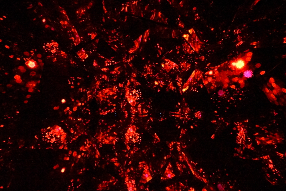 この《Megalith Crystal Formation》の空間には、様々な「境界のないアート」群が、部屋から部屋へと、館内を移動しながら入ってくるのだという。「境界のないアート」とは、終わりも始まりもない、と言い換えることができるだろう。チームラボボーダレスの“境界のないひとつの世界の中で、さまよい、探索し、発見する”というコンセプトを体現した、思索的な展示である。