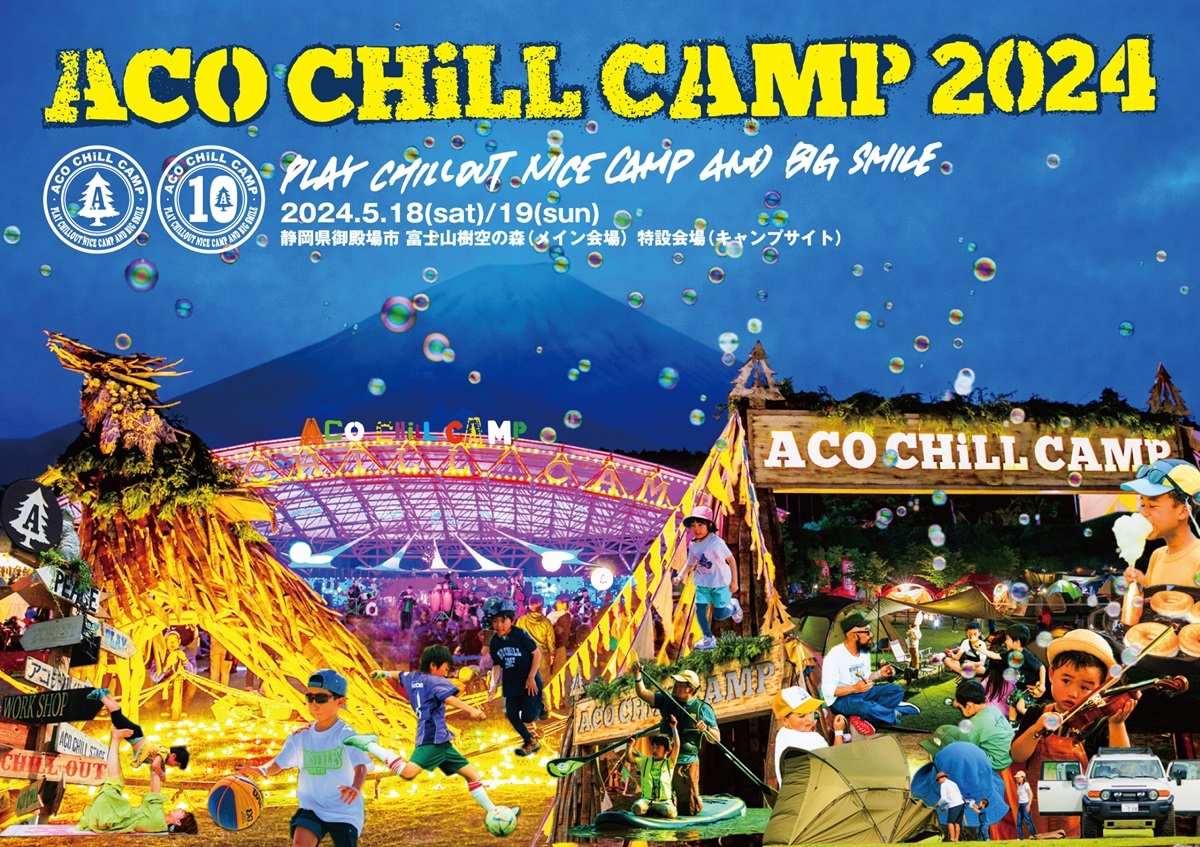2024年5月18日(土)、19(日)の2日間、静岡県御殿場市「富士山樹空の森」を会場に『ACO CHiLL CAMP 2024 ~アソブ、オドロク、フジサン、キャンプ。~』の開催が発表された。