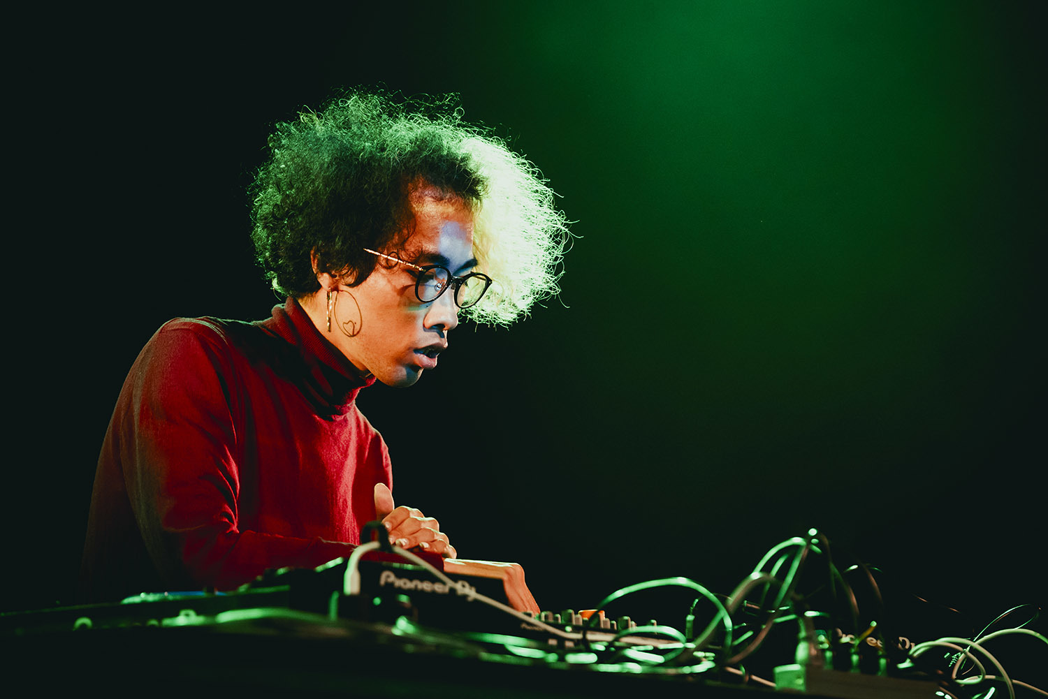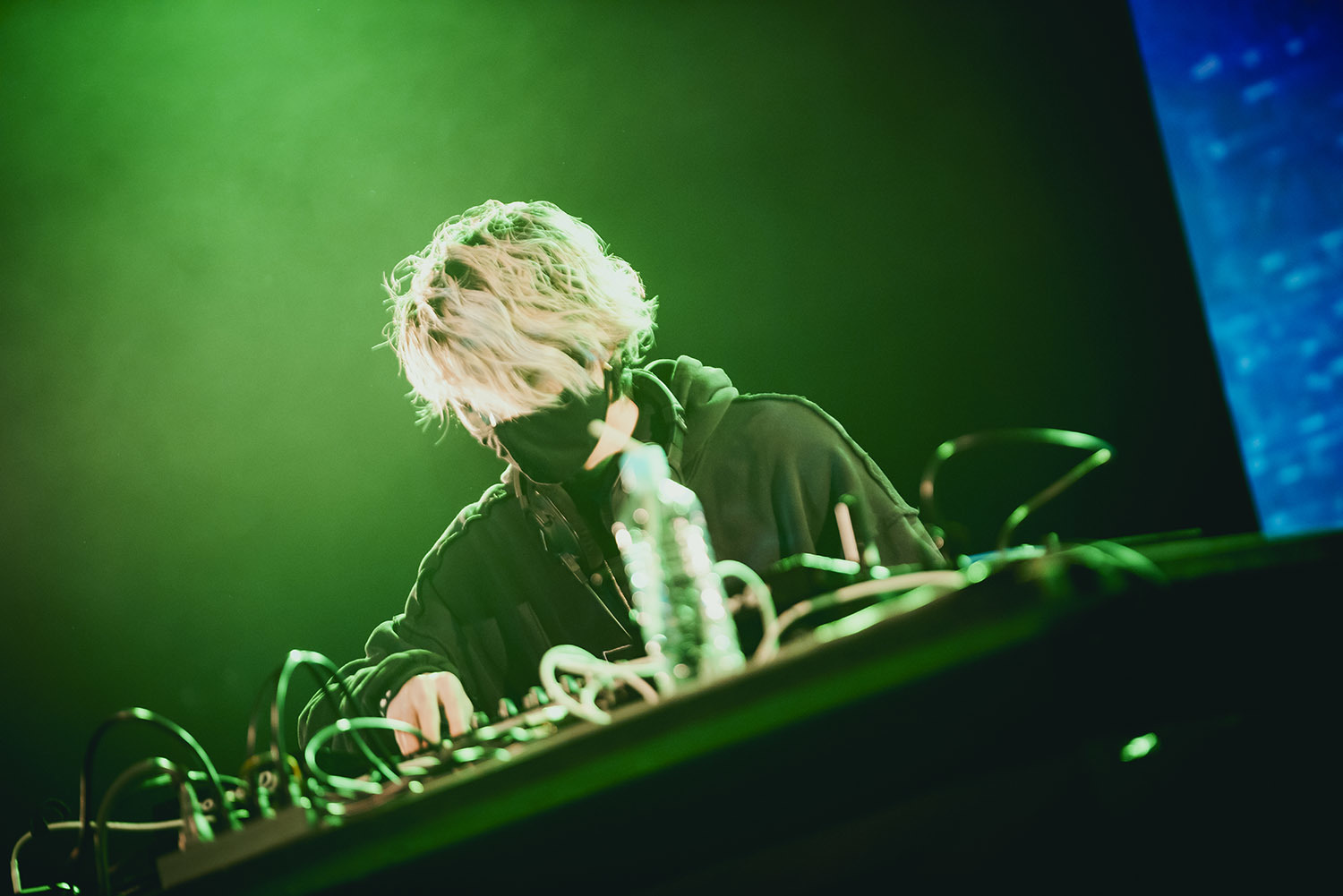 その世界観が臨界点に達した時、選曲にはポップさが添加される。ゲームミュージックをサンプリングした曲展開でオーディエンスの心を引き込むと、ジャンルレスな選曲で会場の空気を掌握。会場に大きな一体感を生み出した。